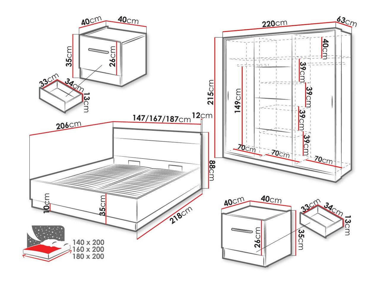 215 cm  220 cm  63 cm