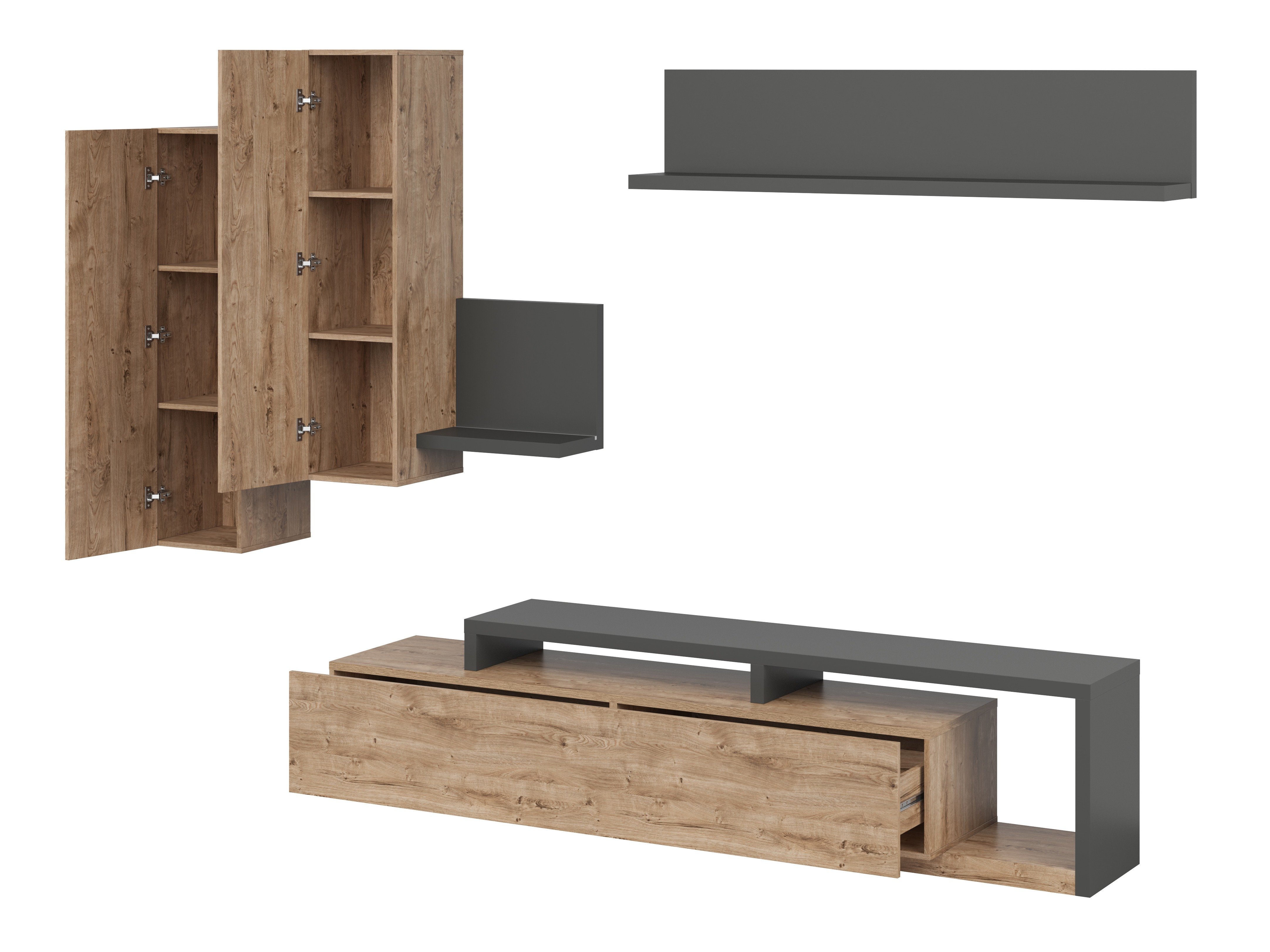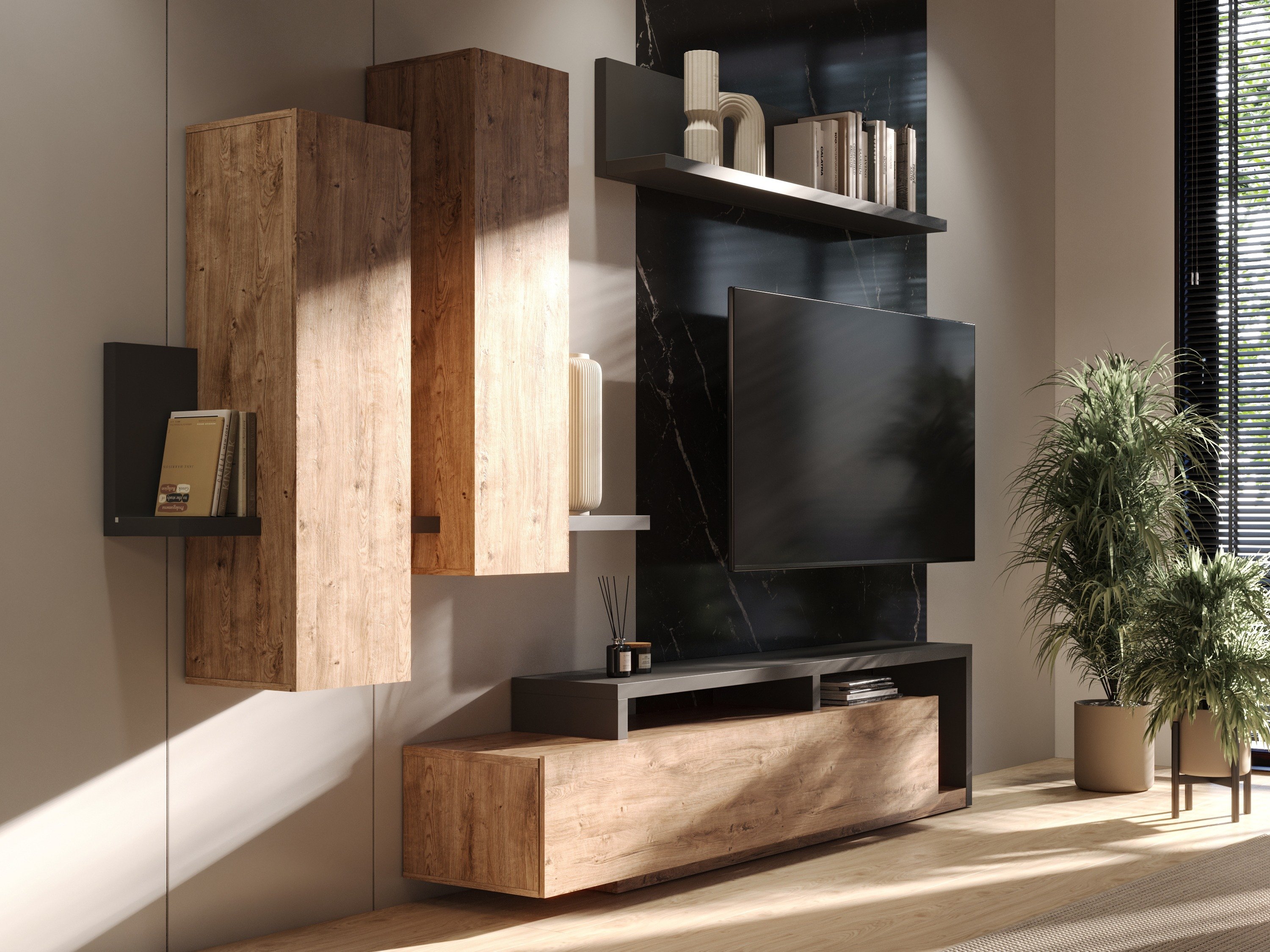 La collection est idéale pour une maison où les invités sont toujours les bienvenus. Plusieurs options de couleurs permettent de créer différentes compositions. Les abat-jours de meubles blancs et gris sont parfaits pour un intérieur de style industriel. Les surfaces grises, qui imitent la structure de la pierre, sont très élégantes lorsqu'elles sont combinées avec la couleur blanche mate. Les meubles avec des motifs en bois naturel et des éléments de couleur graphite souligneront le caractère unique de l'intérieur. La combinaison du blanc et du bois ira bien avec un intérieur de style scandinave.