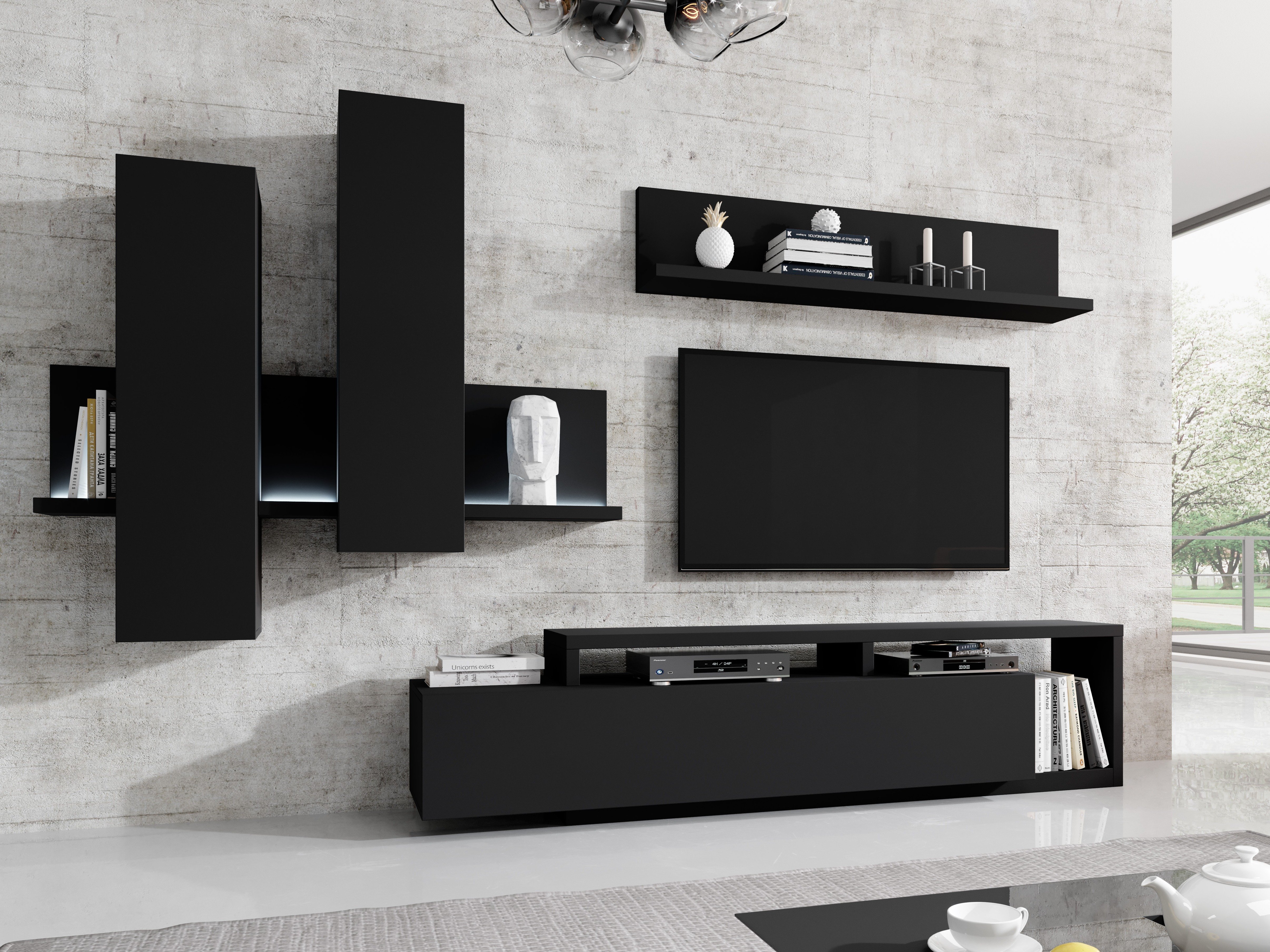L'ensemble standard des meubles de salon comprend un éclairage d'étagère moderne et économe en énergie, qui aidera à créer une atmosphère chaleureuse et romantique dans votre maison.