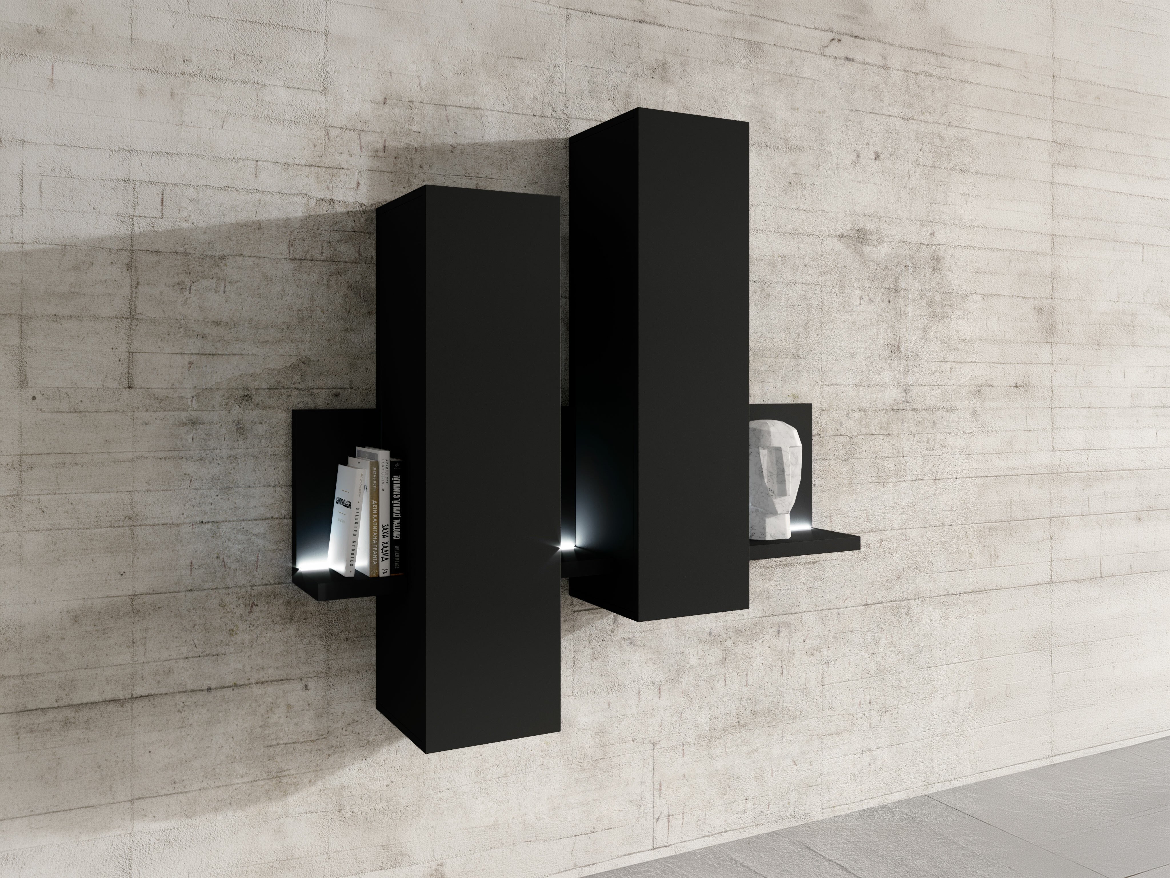 La surface du meuble est recouverte d'un film spécial qui crée un effet extrêmement mat. La principale caractéristique de ce film est sa résistance aux marques de contact. Grâce à cette caractéristique, aucune trace de doigt n'est visible sur la surface du meuble, ce qui facilite l'entretien de la surface. La surface mate du meuble semble lisse et souligne parfaitement le design exclusif du meuble.