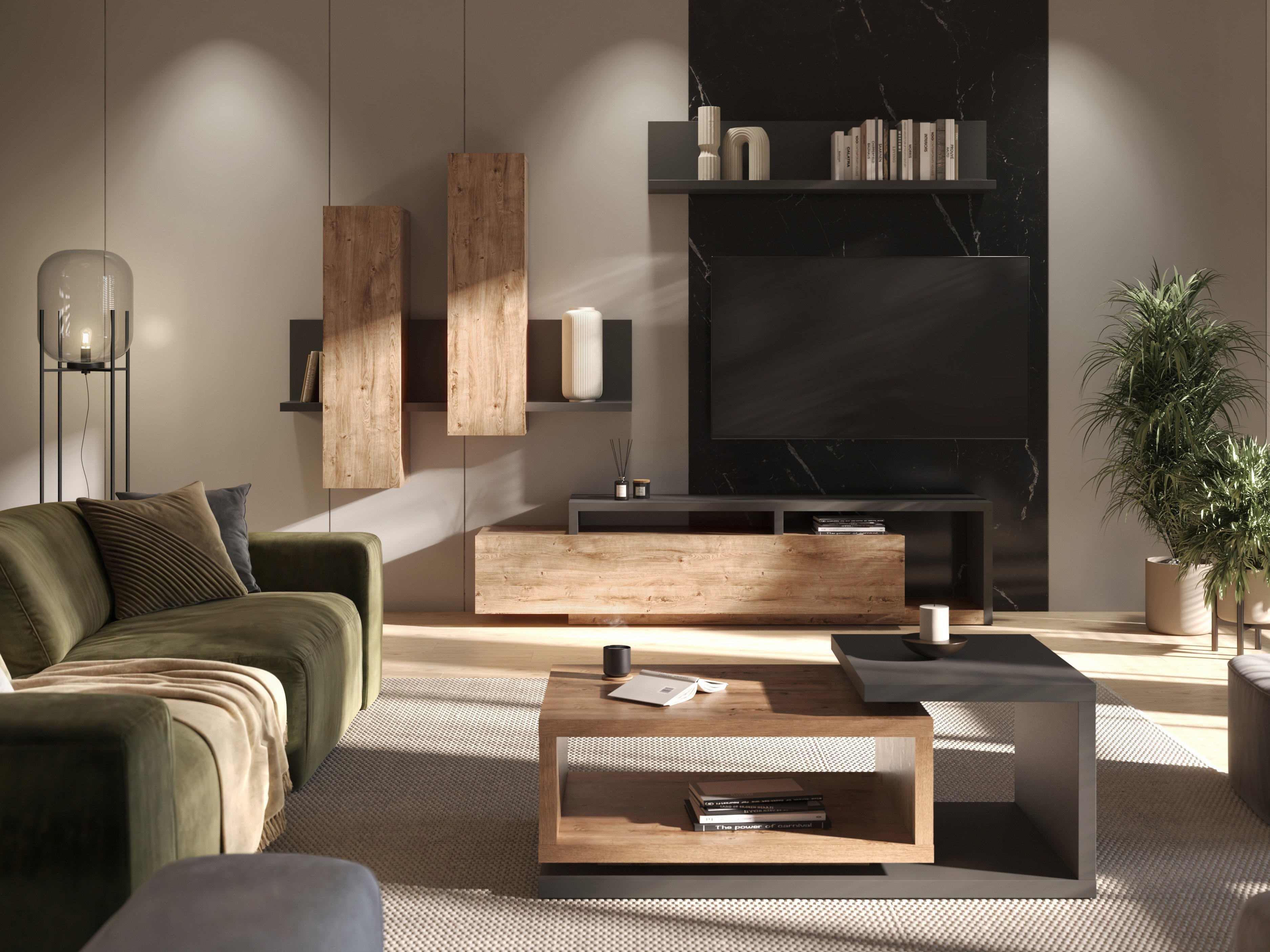 La collection est idéale pour une maison où les invités sont toujours les bienvenus. Plusieurs options de couleurs permettent de créer différentes compositions. Les abat-jours de meubles blancs et gris sont parfaits pour un intérieur de style industriel. Les surfaces grises, qui imitent la structure de la pierre, sont très élégantes lorsqu'elles sont combinées avec la couleur blanche mate. Les meubles avec des motifs en bois naturel et des éléments de couleur graphite souligneront le caractère unique de l'intérieur. La combinaison du blanc et du bois ira bien avec un intérieur de style scandinave.