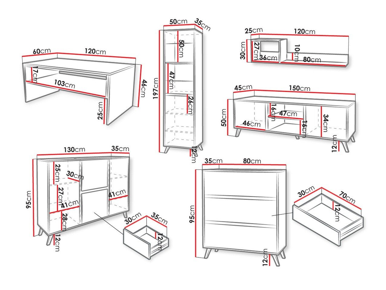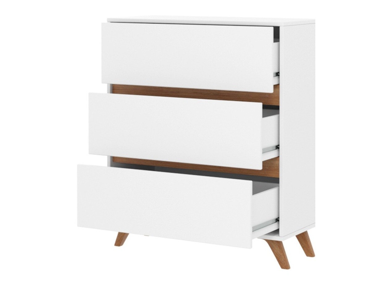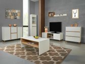 Cette collection de meubles de salon de style scandinave est conçue non seulement pour être admirée, mais aussi pour être utilisée. Pour ceux qui apprécient les meubles pratiques et ne veulent pas expérimenter des couleurs ou des designs complexes, cette collection est ce que vous recherchez. La palette de couleurs du chêne blanc et doré est minimaliste et intemporelle, vous pouvez donc être sûr que les meubles de cette collection seront utilisés pendant de nombreuses années. Les poignées cachées soulignent le design minimaliste et offrent une commodité lors de l'ouverture des tiroirs ou des portes. Les portes ont des inserts en verre trempé. Ce type de verre est plus solide et plus sûr à utiliser que le verre ordinaire. Les meubles de la collection sont adaptés aux robots aspirateurs, il sera donc extrêmement facile de maintenir la propreté sous les meubles.