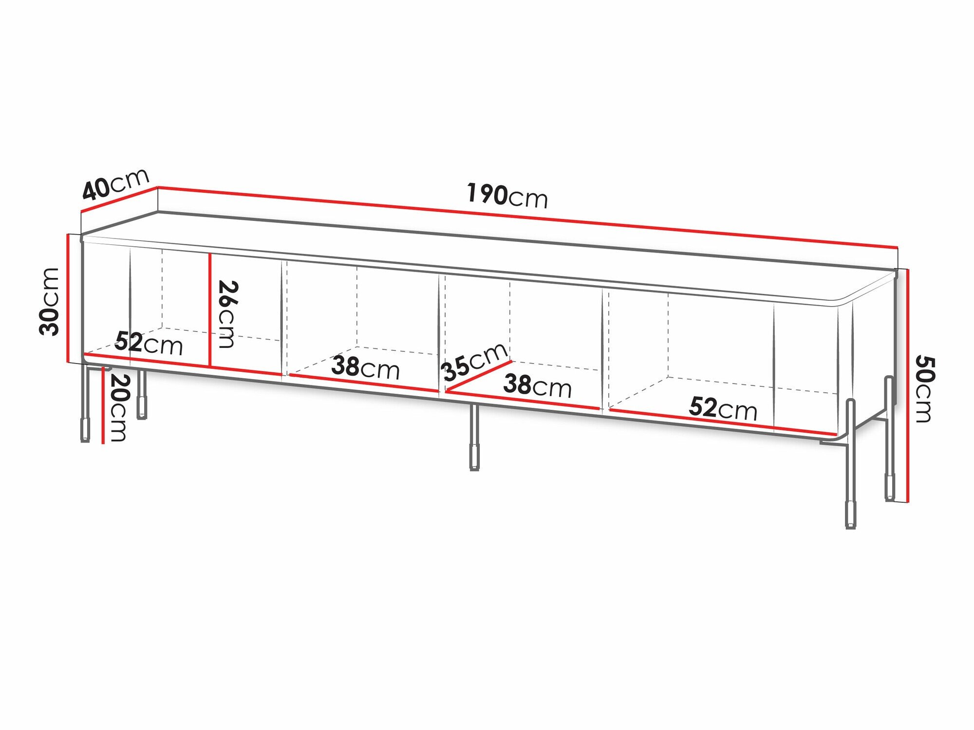 52 cm  200 cm  38 cm