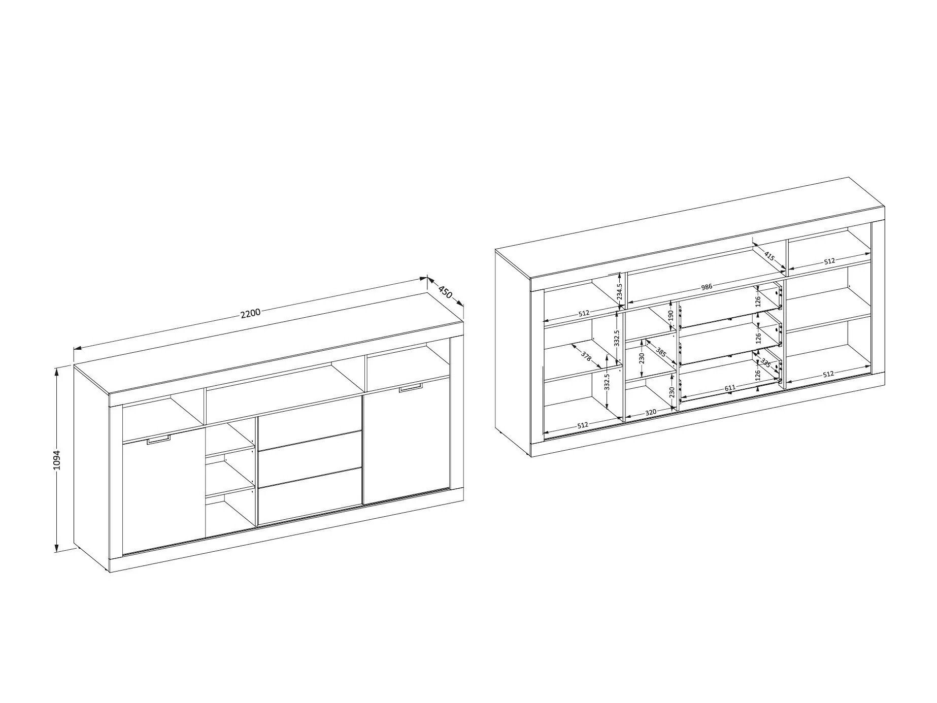 Dimensions de la commode: