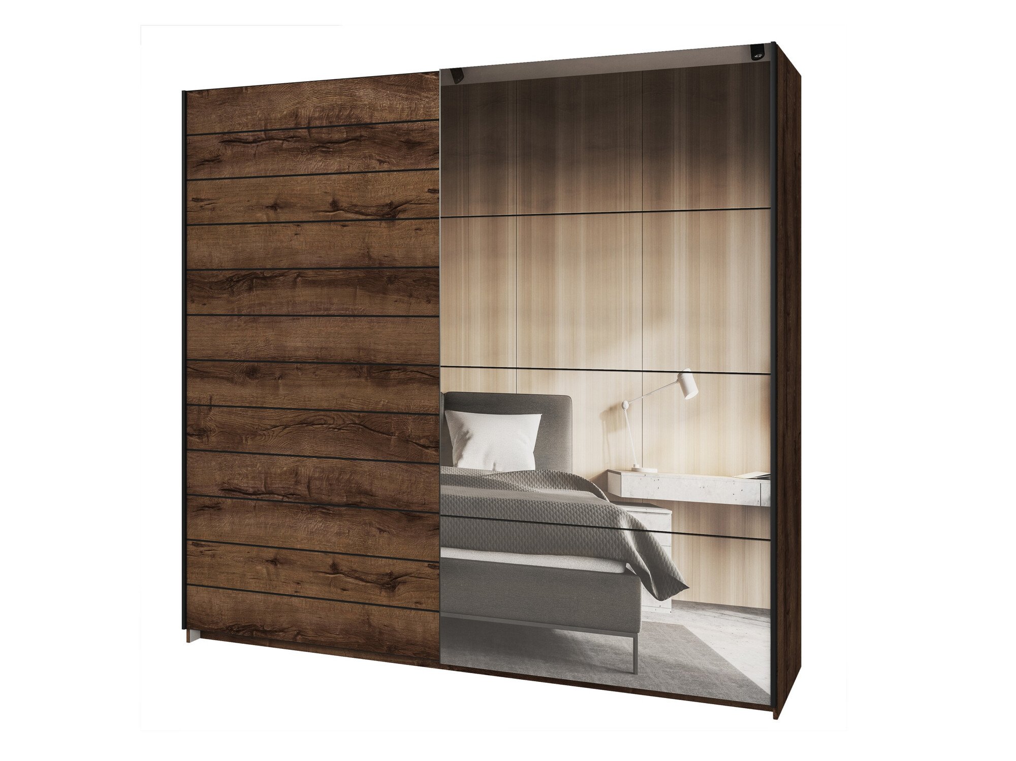La collection de chambres présente des meubles de couleur moderne et des panneaux de meubles de la plus haute qualité. La collection comprend un lit avec une boîte à literie, ce qui vous garantira une bonne nuit de sommeil. La collection comprend également une commode pratique avec portes et tiroirs, des tables de chevet et une armoire. La collection aidera à créer un design de chambre fonctionnel et confortable. Ce mobilier répondra aux attentes les plus élevées.