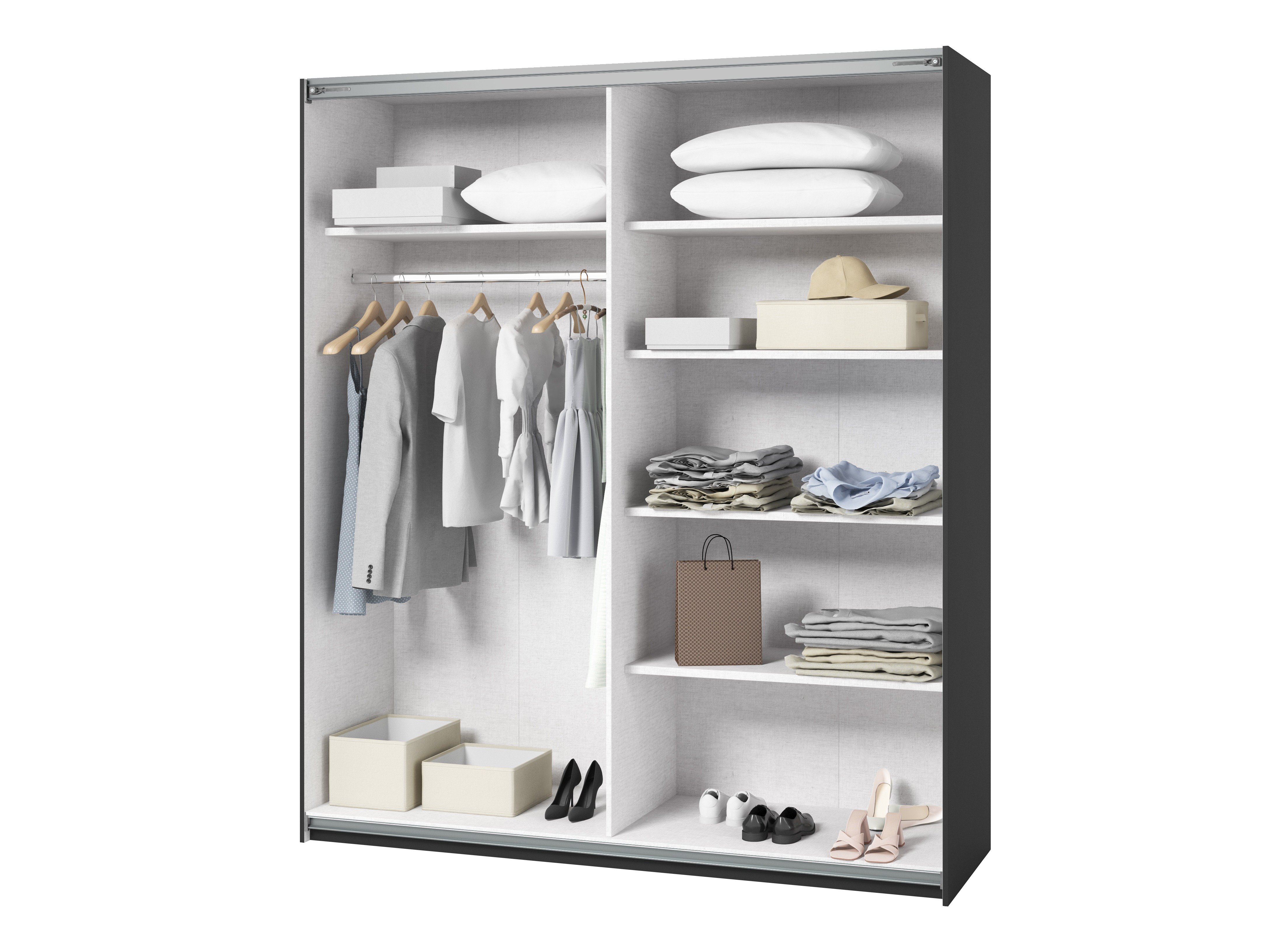 La collection de chambres présente des meubles de couleur moderne et des panneaux de meubles de la plus haute qualité. La collection comprend un lit avec une boîte à literie, ce qui vous garantira une bonne nuit de sommeil. La collection comprend également une commode pratique avec portes et tiroirs, des tables de chevet et une armoire. La collection aidera à créer un design de chambre fonctionnel et confortable. Ce mobilier répondra aux attentes les plus élevées.