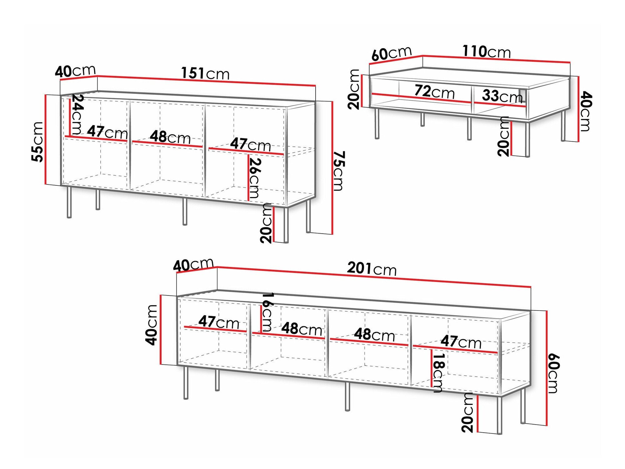 40 cm  60 cm  110 cm