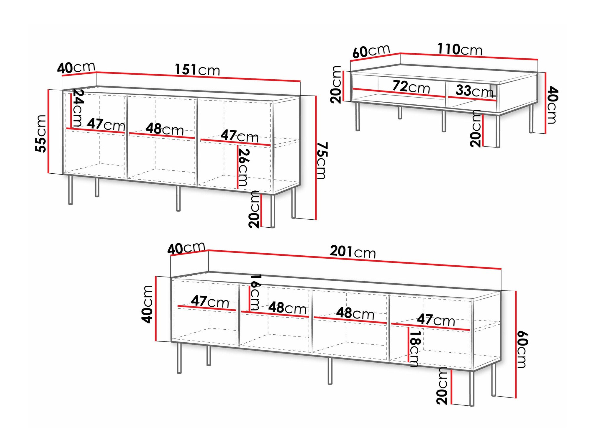60 cm  201 cm  40 cm