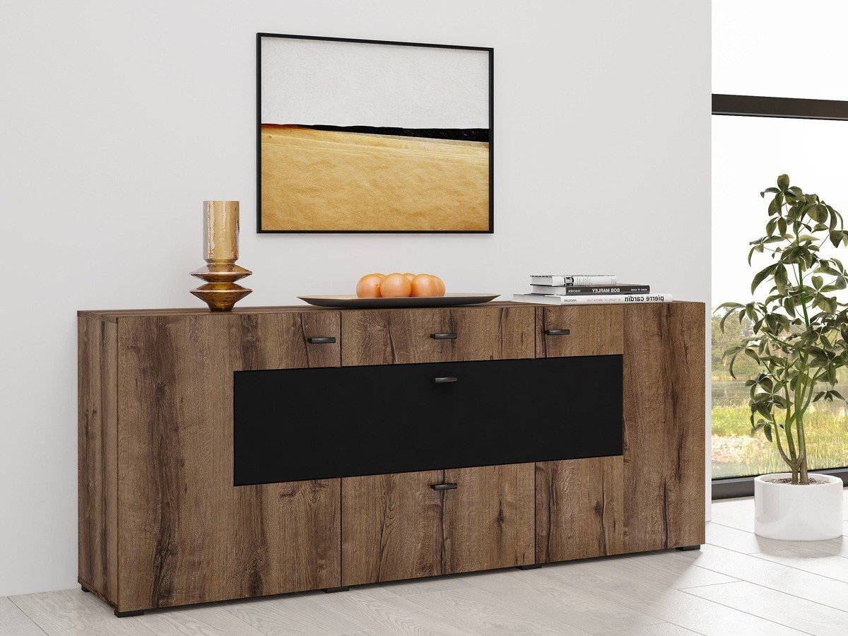 Commode Mondalo 104 (Chêne du Monastery + Noir mat)