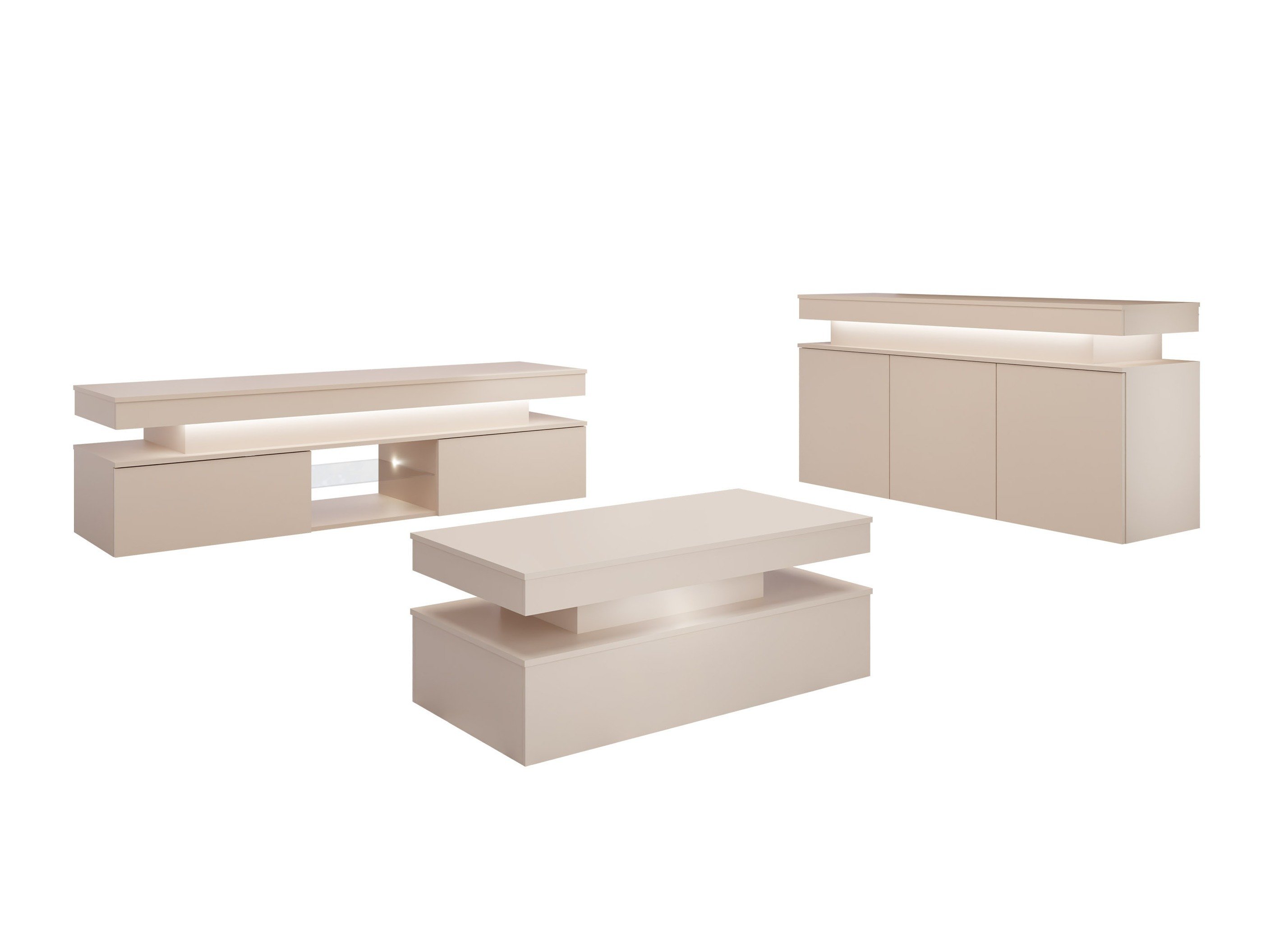 Les intérieurs modernes privilégient de plus en plus les formes épurées, l'ordre et les espaces où chaque élément a sa raison d'être. Enracinée dans la philosophie scandinave selon laquelle le moins est le plus, cette approche permet de créer des environnements domestiques calmes et visuellement légers. Cette collection de meubles reflète précisément cette esthétique. Le design moderne favorise la cohésion et l'harmonie de l'intérieur, sans détails superflus, ce qui contribue à maintenir un aspect propre et organisé. Les finitions lisses, mates et brillantes, ajoutent une touche d'élégance et renforcent visuellement l'impression d'espace. L'éclairage LED intégré, économe en énergie, complète subtilement le design et crée une atmosphère chaleureuse et accueillante. Les systèmes d'ouverture par effleurement préservent l'esthétique minimaliste en supprimant le besoin de poignées visibles ou d'éléments supplémentaires.