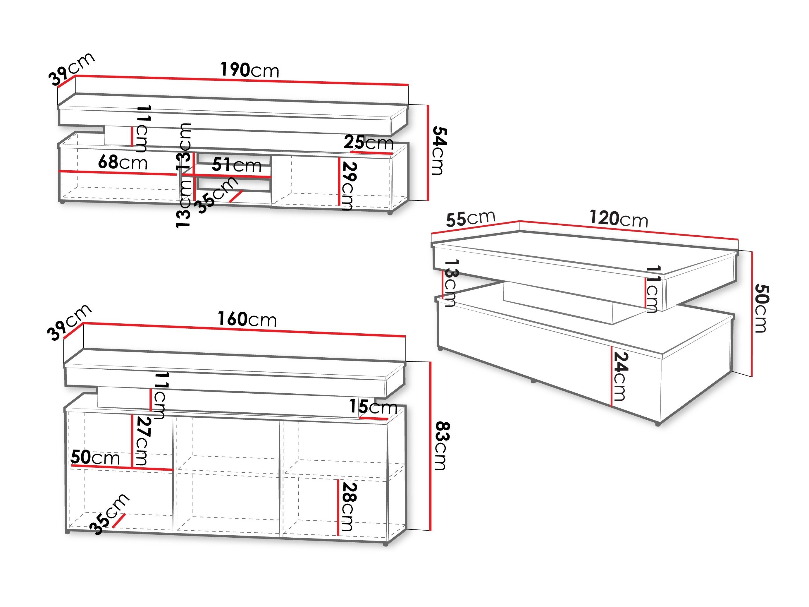 54 x 190 x 39 cm