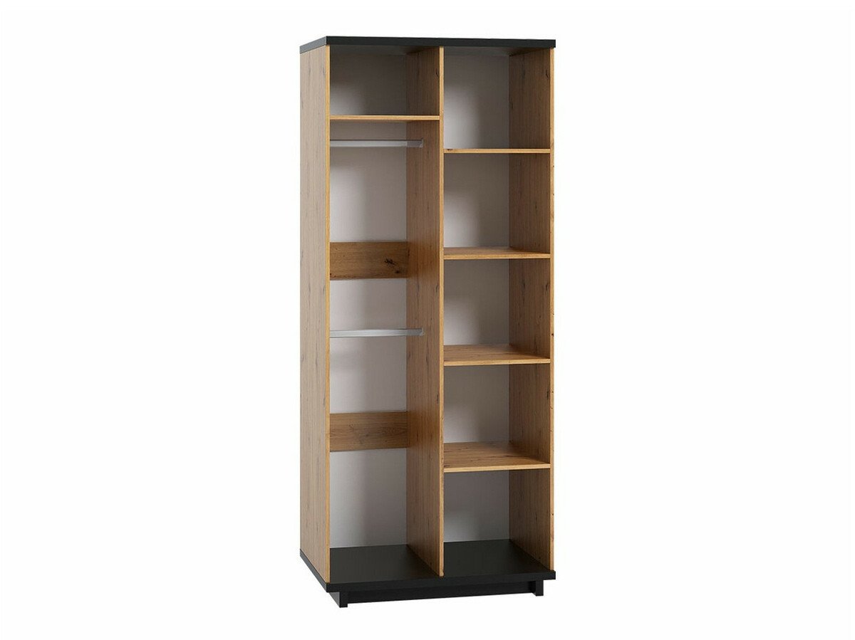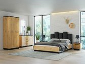 Cette collection de mobilier propose des meubles pour le salon et la chambre à coucher. Le design moderne et les lignes élégantes se complètent pour créer une combinaison parfaite. La collection attire le regard par ses couleurs chaudes et ses motifs bois. Les panneaux noirs mats sont assortis aux façades en chêne. Cette combinaison de couleurs se complète, soulignant la forme du meuble. Le verre trempé est utilisé dans les vitrines, qui est plus résistant que le verre ordinaire. Un lit au design exclusif deviendra le point culminant de la chambre. Tête de lit moelleuse, boîte à linge de lit, mécanisme de levage à gaz, tout ce dont vous avez besoin pour un repos parfait. Les bords des meubles de cette collection sont protégés par du ruban de finition, qui est généralement utilisé pour protéger les bords des panneaux.