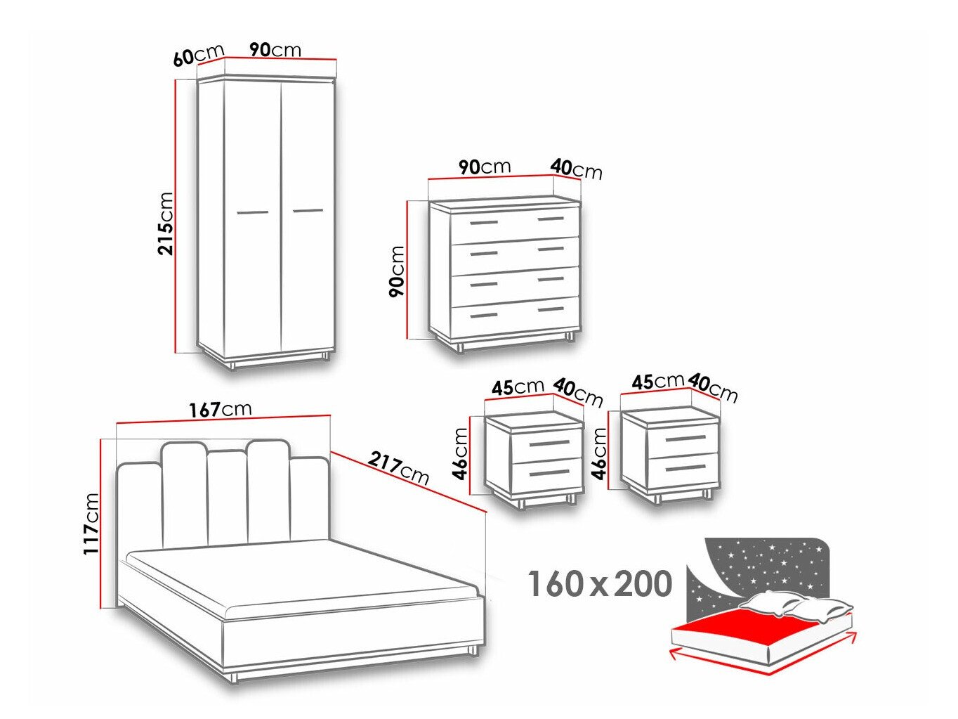 Cette collection de mobilier propose des meubles pour le salon et la chambre à coucher. Le design moderne et les lignes élégantes se complètent pour créer une combinaison parfaite. La collection attire le regard par ses couleurs chaudes et ses motifs bois. Les panneaux noirs mats sont assortis aux façades en chêne. Cette combinaison de couleurs se complète, soulignant la forme du meuble. Le verre trempé est utilisé dans les vitrines, qui est plus résistant que le verre ordinaire. Un lit au design exclusif deviendra le point culminant de la chambre. Tête de lit moelleuse, boîte à linge de lit, mécanisme de levage à gaz, tout ce dont vous avez besoin pour un repos parfait. Les bords des meubles de cette collection sont protégés par du ruban de finition, qui est généralement utilisé pour protéger les bords des panneaux.