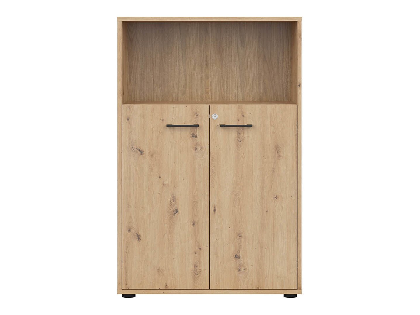 Si vous recherchez des meubles pour un bureau fonctionnel, cette collection est faite pour vous. La combinaison de couleurs chêne « Artisan » et noir ajoute de la modernité au mobilier. Les poignées minimalistes en plastique noir s'intègrent parfaitement au design. Les meubles de la collection sont fabriqués en panneaux de particules stratifiés avec une surface résistante aux rayures. Grâce à ce film protecteur, les meubles deviennent non seulement résistants aux rayures, mais aussi mieux protégés de l'humidité ou des taches. Le mécanisme de fermeture silencieuse intégré aux meubles améliorera encore l'expérience de l'utilisateur et assurera l'ouverture et la fermeture silencieuses des portes et des tiroirs. Le meuble dispose de zones de rangement ouvertes et fermées. Les objets personnels peuvent ainsi être rangés sur des étagères visibles ou cachés derrière des portes. La collection utilise du verre dépoli trempé et traité thermiquement. Sa résistance est 5 à 6 fois supérieure à celle du verre ordinaire, non traité thermiquement. Le verre est façonné par un cadre en aluminium noir. Les étagères de la collection sont universelles. Lors de leur montage, il est possible de décider dans quel sens la porte s'ouvrira. Les blocs-tiroirs utilisent des roulettes au lieu de pieds, ce qui rendra extrêmement facile et pratique le déplacement des meubles dans la pièce. De plus, les étagères à verrouillage permettront de ranger les objets personnels en toute sécurité. La base des bureaux de la collection est constituée d'un cadre métallique noir qui assure la stabilité. Pour ceux qui recherchent un bureau fonctionnel, la collection propose des bureaux dotés d'un mécanisme électrique de réglage de la hauteur. Il suffit d'appuyer sur quelques boutons pour que la hauteur de la table change et que vous puissiez travailler de manière encore plus confortable et ergonomique. >Avec des meubles fonctionnels et universels, l'aménagement d'un espace de bureau sera un plaisir.