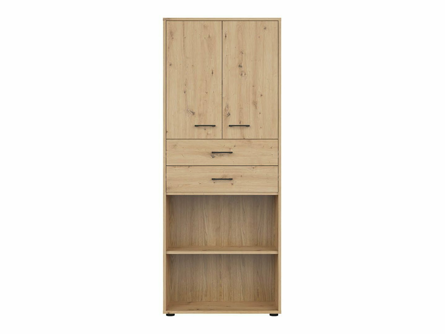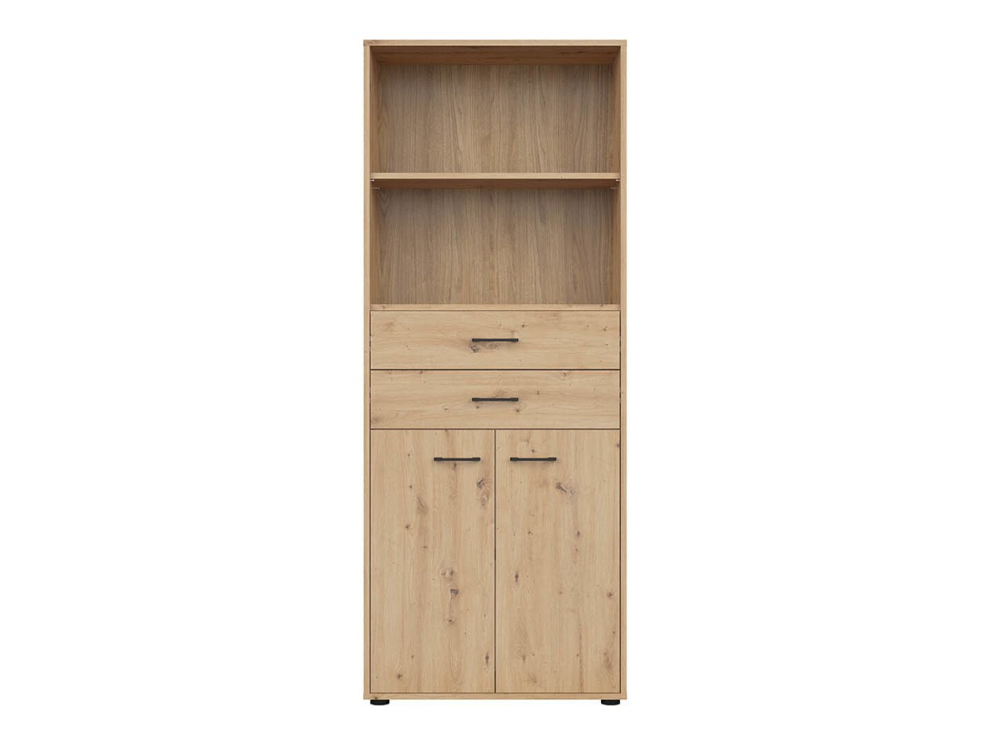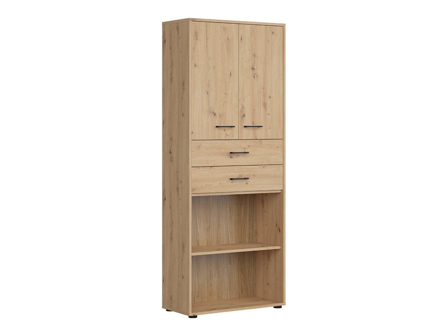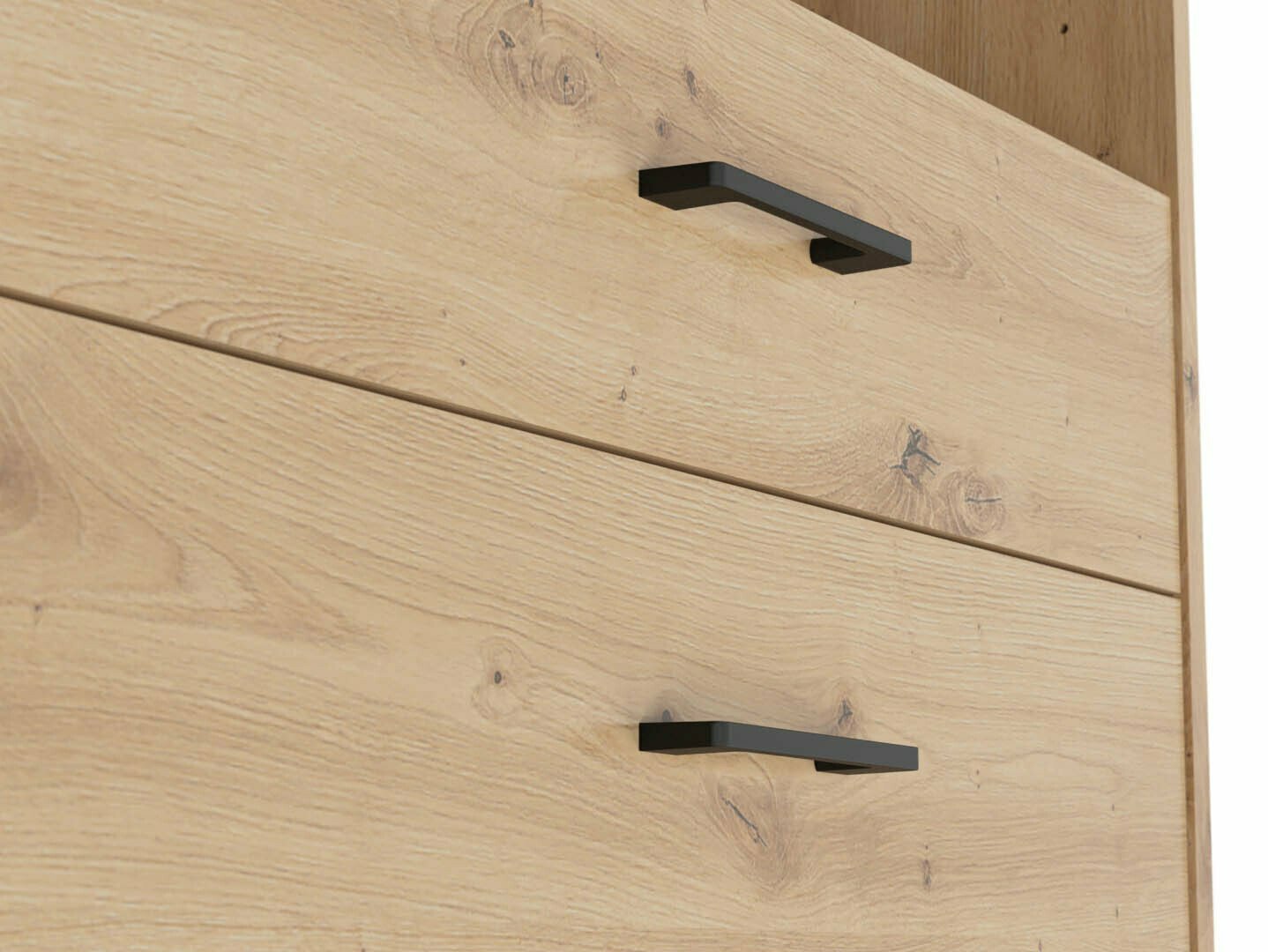 Si vous recherchez des meubles pour un bureau fonctionnel, cette collection est faite pour vous. La combinaison de couleurs chêne « Artisan » et noir ajoute de la modernité au mobilier. Les poignées minimalistes en plastique noir s'intègrent parfaitement au design. Les meubles de la collection sont fabriqués en panneaux de particules stratifiés avec une surface résistante aux rayures. Grâce à ce film protecteur, les meubles deviennent non seulement résistants aux rayures, mais aussi mieux protégés de l'humidité ou des taches. Le mécanisme de fermeture silencieuse intégré aux meubles améliorera encore l'expérience de l'utilisateur et assurera l'ouverture et la fermeture silencieuses des portes et des tiroirs. Le meuble dispose de zones de rangement ouvertes et fermées. Les objets personnels peuvent ainsi être rangés sur des étagères visibles ou cachés derrière des portes. La collection utilise du verre dépoli trempé et traité thermiquement. Sa résistance est 5 à 6 fois supérieure à celle du verre ordinaire, non traité thermiquement. Le verre est façonné par un cadre en aluminium noir. Les étagères de la collection sont universelles. Lors de leur montage, il est possible de décider dans quel sens la porte s'ouvrira. Les blocs-tiroirs utilisent des roulettes au lieu de pieds, ce qui rendra extrêmement facile et pratique le déplacement des meubles dans la pièce. De plus, les étagères à verrouillage permettront de ranger les objets personnels en toute sécurité. La base des bureaux de la collection est constituée d'un cadre métallique noir qui assure la stabilité. Pour ceux qui recherchent un bureau fonctionnel, la collection propose des bureaux dotés d'un mécanisme électrique de réglage de la hauteur. Il suffit d'appuyer sur quelques boutons pour que la hauteur de la table change et que vous puissiez travailler de manière encore plus confortable et ergonomique. >Avec des meubles fonctionnels et universels, l'aménagement d'un espace de bureau sera un plaisir.