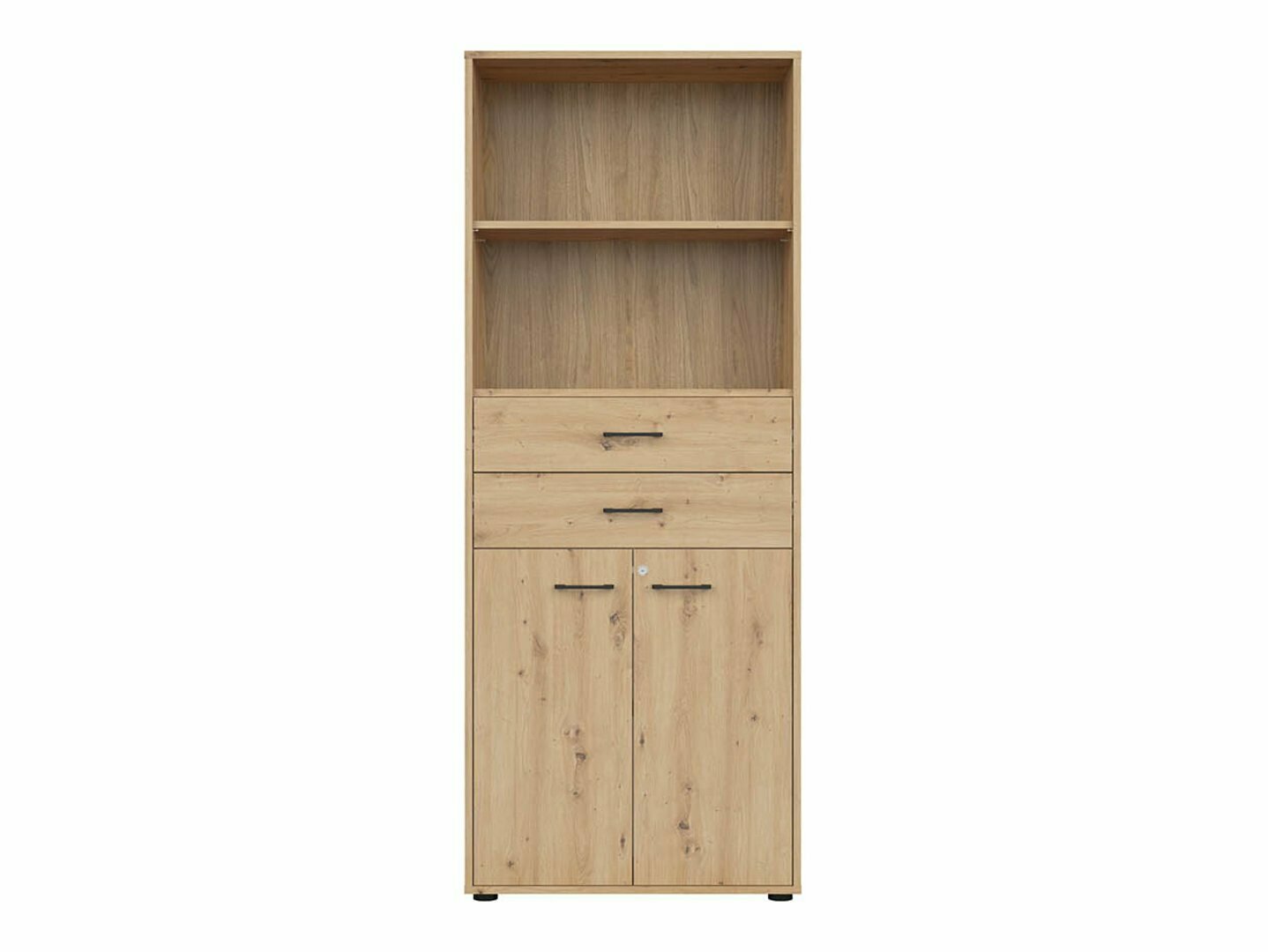 Si vous recherchez des meubles pour un bureau fonctionnel, cette collection est faite pour vous. La combinaison de couleurs chêne « Artisan » et noir ajoute de la modernité au mobilier. Les poignées minimalistes en plastique noir s'intègrent parfaitement au design. Les meubles de la collection sont fabriqués en panneaux de particules stratifiés avec une surface résistante aux rayures. Grâce à ce film protecteur, les meubles deviennent non seulement résistants aux rayures, mais aussi mieux protégés de l'humidité ou des taches. Le mécanisme de fermeture silencieuse intégré aux meubles améliorera encore l'expérience de l'utilisateur et assurera l'ouverture et la fermeture silencieuses des portes et des tiroirs. Le meuble dispose de zones de rangement ouvertes et fermées. Les objets personnels peuvent ainsi être rangés sur des étagères visibles ou cachés derrière des portes. La collection utilise du verre dépoli trempé et traité thermiquement. Sa résistance est 5 à 6 fois supérieure à celle du verre ordinaire, non traité thermiquement. Le verre est façonné par un cadre en aluminium noir. Les étagères de la collection sont universelles. Lors de leur montage, il est possible de décider dans quel sens la porte s'ouvrira. Les blocs-tiroirs utilisent des roulettes au lieu de pieds, ce qui rendra extrêmement facile et pratique le déplacement des meubles dans la pièce. De plus, les étagères à verrouillage permettront de ranger les objets personnels en toute sécurité. La base des bureaux de la collection est constituée d'un cadre métallique noir qui assure la stabilité. Pour ceux qui recherchent un bureau fonctionnel, la collection propose des bureaux dotés d'un mécanisme électrique de réglage de la hauteur. Il suffit d'appuyer sur quelques boutons pour que la hauteur de la table change et que vous puissiez travailler de manière encore plus confortable et ergonomique. >Avec des meubles fonctionnels et universels, l'aménagement d'un espace de bureau sera un plaisir.
