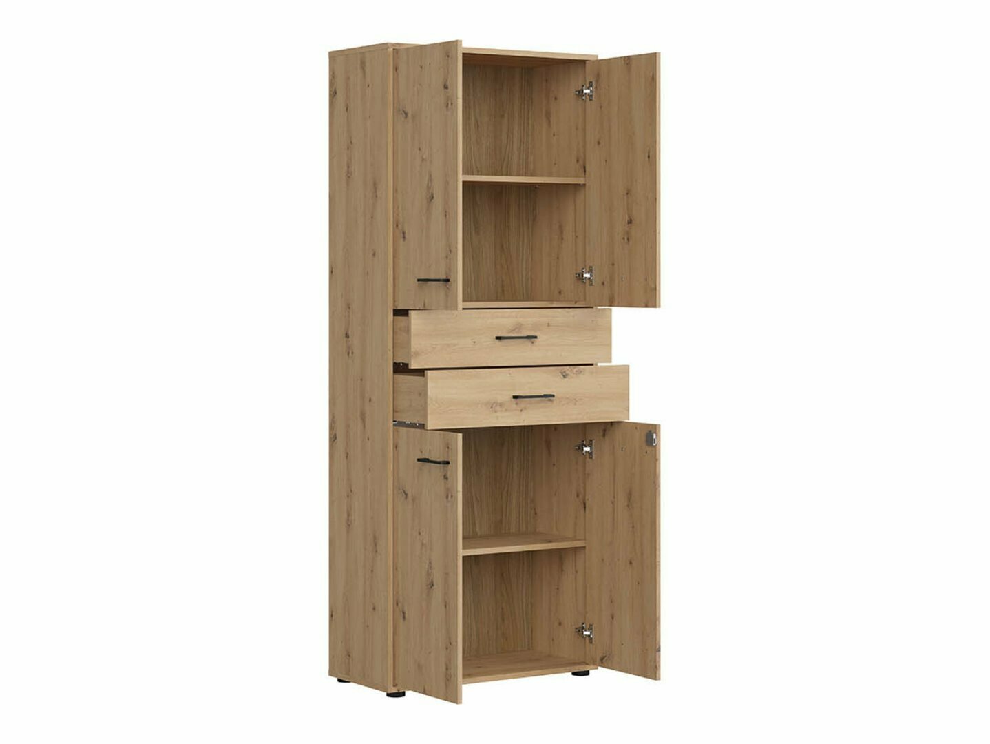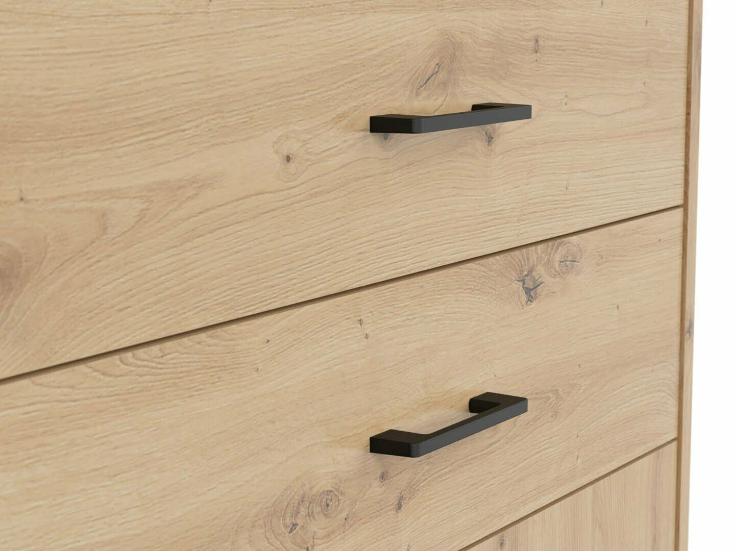Si vous recherchez des meubles pour un bureau fonctionnel, cette collection est faite pour vous. La combinaison de couleurs chêne « Artisan » et noir ajoute de la modernité au mobilier. Les poignées minimalistes en plastique noir s'intègrent parfaitement au design. Les meubles de la collection sont fabriqués en panneaux de particules stratifiés avec une surface résistante aux rayures. Grâce à ce film protecteur, les meubles deviennent non seulement résistants aux rayures, mais aussi mieux protégés de l'humidité ou des taches. Le mécanisme de fermeture silencieuse intégré aux meubles améliorera encore l'expérience de l'utilisateur et assurera l'ouverture et la fermeture silencieuses des portes et des tiroirs. Le meuble dispose de zones de rangement ouvertes et fermées. Les objets personnels peuvent ainsi être rangés sur des étagères visibles ou cachés derrière des portes. La collection utilise du verre dépoli trempé et traité thermiquement. Sa résistance est 5 à 6 fois supérieure à celle du verre ordinaire, non traité thermiquement. Le verre est façonné par un cadre en aluminium noir. Les étagères de la collection sont universelles. Lors de leur montage, il est possible de décider dans quel sens la porte s'ouvrira. Les blocs-tiroirs utilisent des roulettes au lieu de pieds, ce qui rendra extrêmement facile et pratique le déplacement des meubles dans la pièce. De plus, les étagères à verrouillage permettront de ranger les objets personnels en toute sécurité. La base des bureaux de la collection est constituée d'un cadre métallique noir qui assure la stabilité. Pour ceux qui recherchent un bureau fonctionnel, la collection propose des bureaux dotés d'un mécanisme électrique de réglage de la hauteur. Il suffit d'appuyer sur quelques boutons pour que la hauteur de la table change et que vous puissiez travailler de manière encore plus confortable et ergonomique. >Avec des meubles fonctionnels et universels, l'aménagement d'un espace de bureau sera un plaisir.