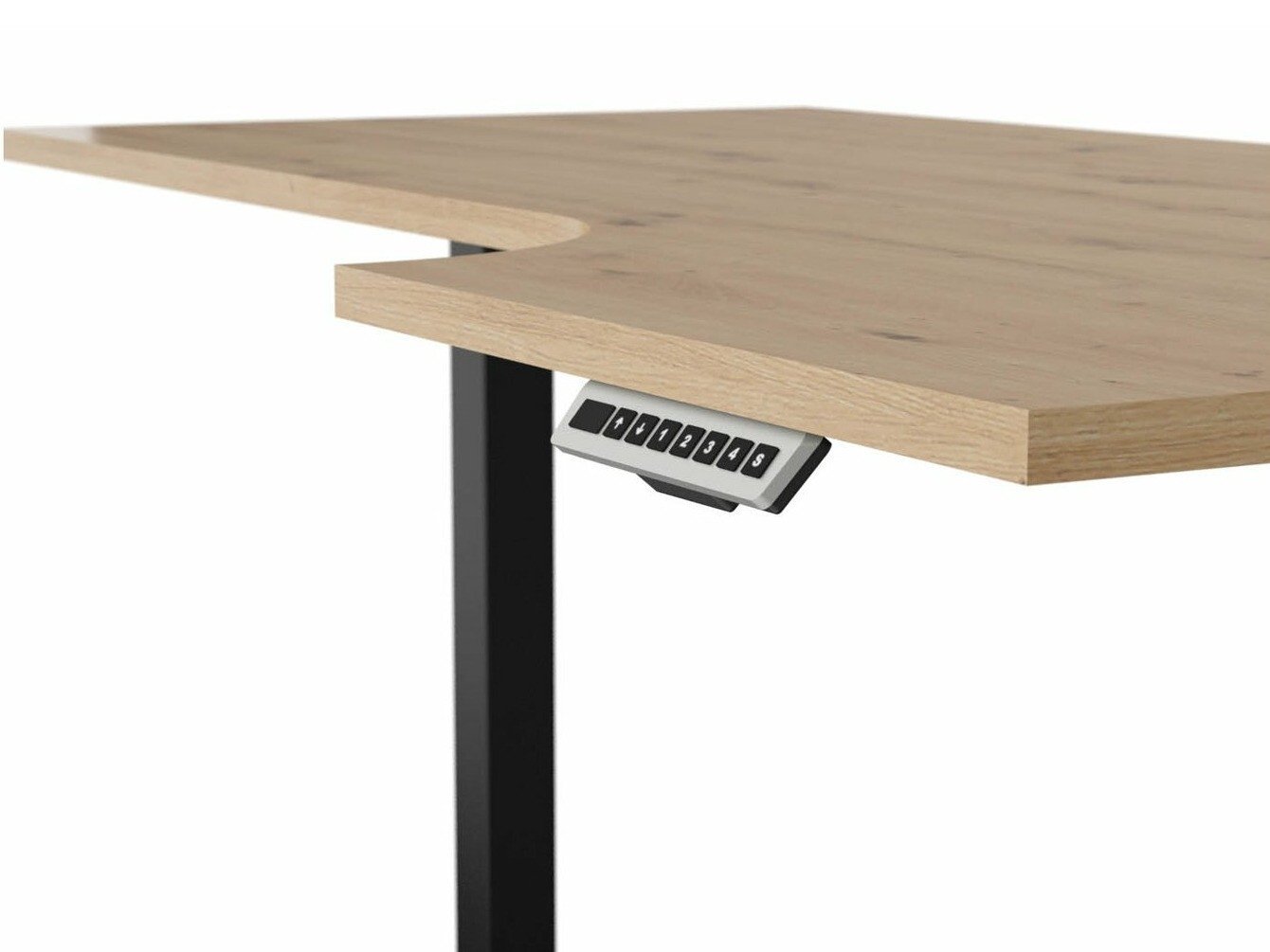 Si vous recherchez des meubles pour un bureau fonctionnel, cette collection est faite pour vous. La combinaison de couleurs chêne « Artisan » et noir ajoute de la modernité au mobilier. Les poignées minimalistes en plastique noir s'intègrent parfaitement au design. Les meubles de la collection sont fabriqués en panneaux de particules stratifiés avec une surface résistante aux rayures. Grâce à ce film protecteur, les meubles deviennent non seulement résistants aux rayures, mais aussi mieux protégés de l'humidité ou des taches. Le mécanisme de fermeture silencieuse intégré aux meubles améliorera encore l'expérience de l'utilisateur et assurera l'ouverture et la fermeture silencieuses des portes et des tiroirs. Le meuble dispose de zones de rangement ouvertes et fermées. Les objets personnels peuvent ainsi être rangés sur des étagères visibles ou cachés derrière des portes. La collection utilise du verre dépoli trempé et traité thermiquement. Sa résistance est 5 à 6 fois supérieure à celle du verre ordinaire, non traité thermiquement. Le verre est façonné par un cadre en aluminium noir. Les étagères de la collection sont universelles. Lors de leur montage, il est possible de décider dans quel sens la porte s'ouvrira. Les blocs-tiroirs utilisent des roulettes au lieu de pieds, ce qui rendra extrêmement facile et pratique le déplacement des meubles dans la pièce. De plus, les étagères à verrouillage permettront de ranger les objets personnels en toute sécurité. La base des bureaux de la collection est constituée d'un cadre métallique noir qui assure la stabilité. Pour ceux qui recherchent un bureau fonctionnel, la collection propose des bureaux dotés d'un mécanisme électrique de réglage de la hauteur. Il suffit d'appuyer sur quelques boutons pour que la hauteur de la table change et que vous puissiez travailler de manière encore plus confortable et ergonomique. >Avec des meubles fonctionnels et universels, l'aménagement d'un espace de bureau sera un plaisir.