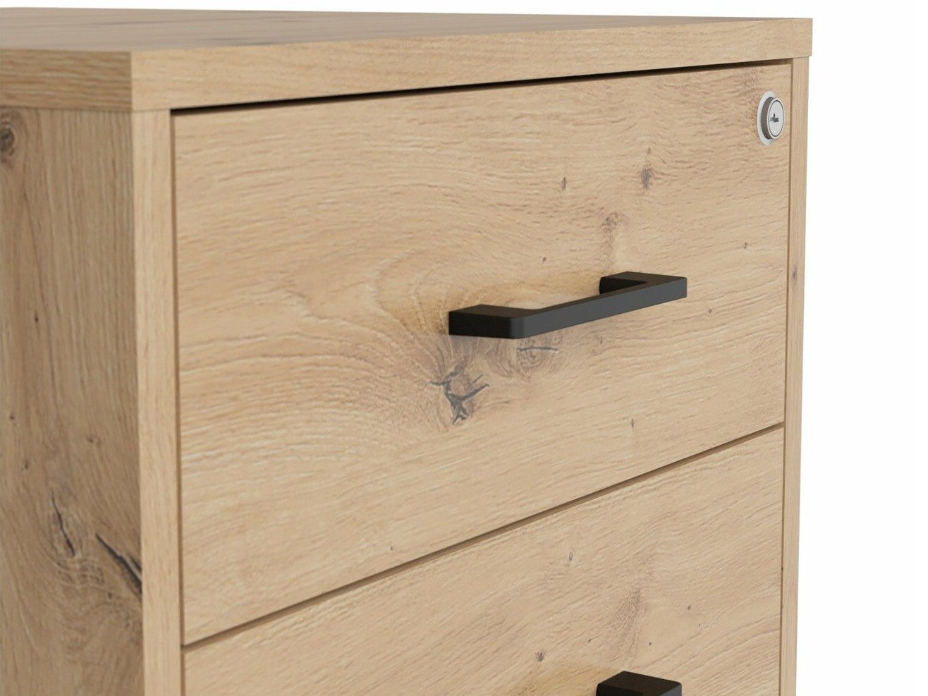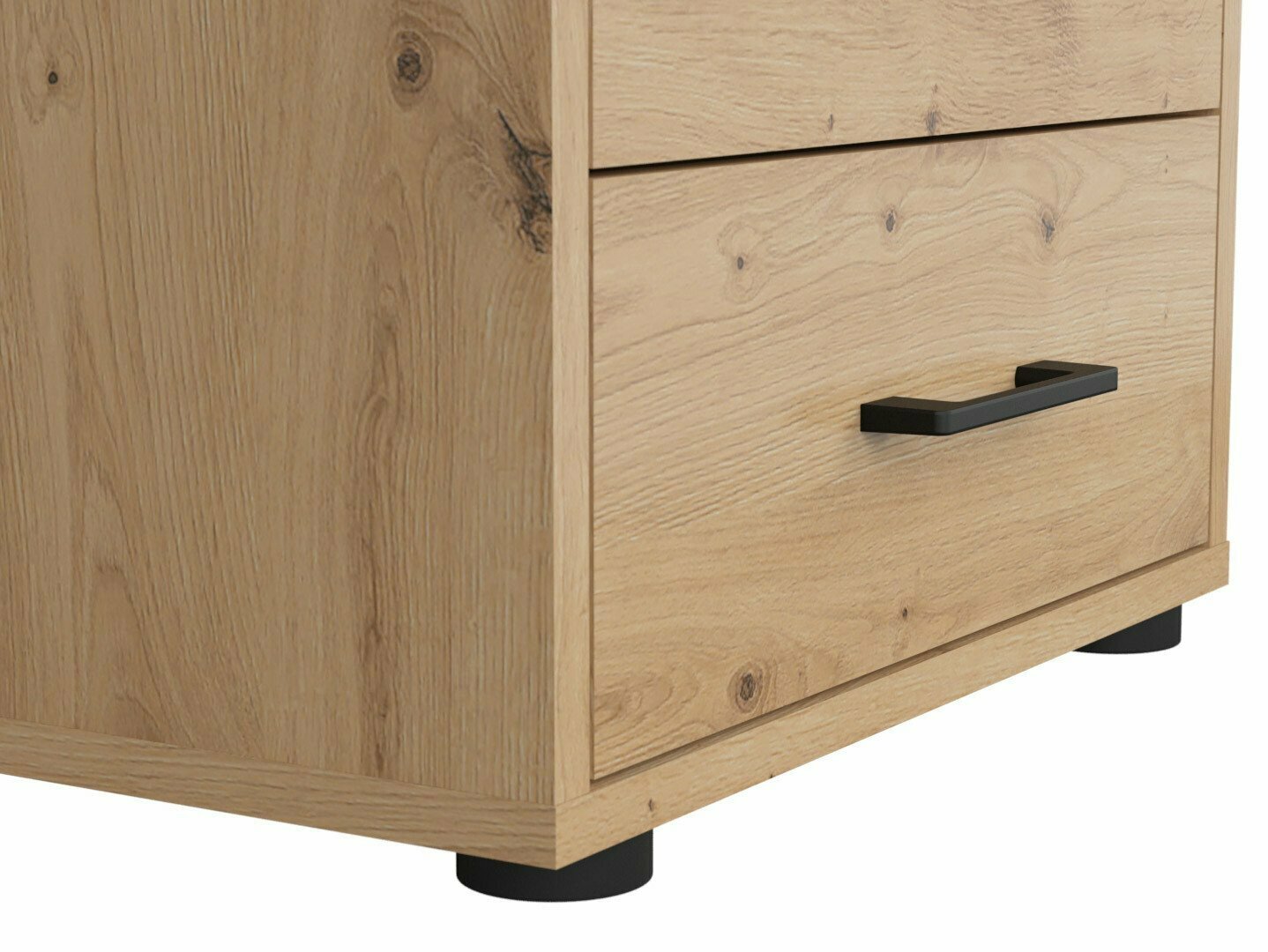 Si vous recherchez des meubles pour un bureau fonctionnel, cette collection est faite pour vous. La combinaison de couleurs chêne « Artisan » et noir ajoute de la modernité au mobilier. Les poignées minimalistes en plastique noir s'intègrent parfaitement au design. Les meubles de la collection sont fabriqués en panneaux de particules stratifiés avec une surface résistante aux rayures. Grâce à ce film protecteur, les meubles deviennent non seulement résistants aux rayures, mais aussi mieux protégés de l'humidité ou des taches. Le mécanisme de fermeture silencieuse intégré aux meubles améliorera encore l'expérience de l'utilisateur et assurera l'ouverture et la fermeture silencieuses des portes et des tiroirs. Le meuble dispose de zones de rangement ouvertes et fermées. Les objets personnels peuvent ainsi être rangés sur des étagères visibles ou cachés derrière des portes. La collection utilise du verre dépoli trempé et traité thermiquement. Sa résistance est 5 à 6 fois supérieure à celle du verre ordinaire, non traité thermiquement. Le verre est façonné par un cadre en aluminium noir. Les étagères de la collection sont universelles. Lors de leur montage, il est possible de décider dans quel sens la porte s'ouvrira. Les blocs-tiroirs utilisent des roulettes au lieu de pieds, ce qui rendra extrêmement facile et pratique le déplacement des meubles dans la pièce. De plus, les étagères à verrouillage permettront de ranger les objets personnels en toute sécurité. La base des bureaux de la collection est constituée d'un cadre métallique noir qui assure la stabilité. Pour ceux qui recherchent un bureau fonctionnel, la collection propose des bureaux dotés d'un mécanisme électrique de réglage de la hauteur. Il suffit d'appuyer sur quelques boutons pour que la hauteur de la table change et que vous puissiez travailler de manière encore plus confortable et ergonomique. >Avec des meubles fonctionnels et universels, l'aménagement d'un espace de bureau sera un plaisir.