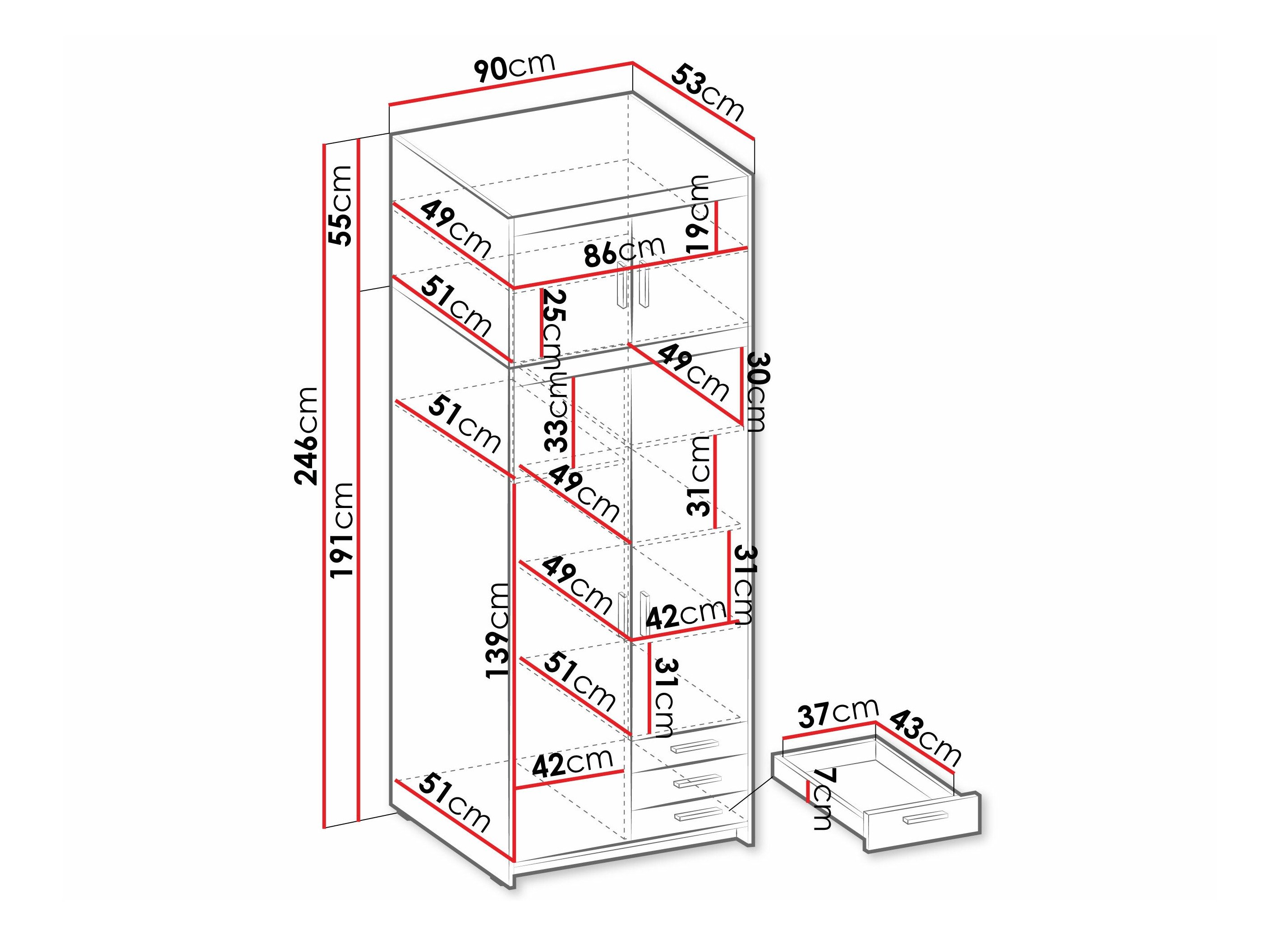 246 cm  90 cm  53 cm
