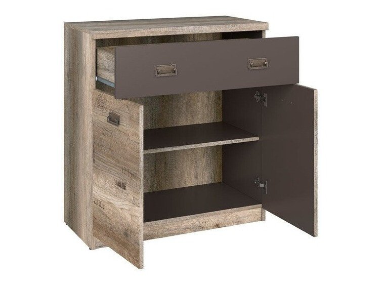 Collection de meubles - pour les passionés de style industriel. Le design soigné des meubles vous permettra de trouver de l'espace pour tous vos livres, cahiers ou fournitures scolaires. La surface des meubles est résistante aux petites rayures. Le caractère jeune des meubles est accentué par d'intéressantes poignées en métal. Les façades des meubles ornées de notes décoratives contribueront à créer une ambiance de style industriel dans la pièce. Les différents éléments de la collection peuvent être facilement combinés entre eux afin que leur agencement réponde parfaitement aux besoins individuels du jeune.