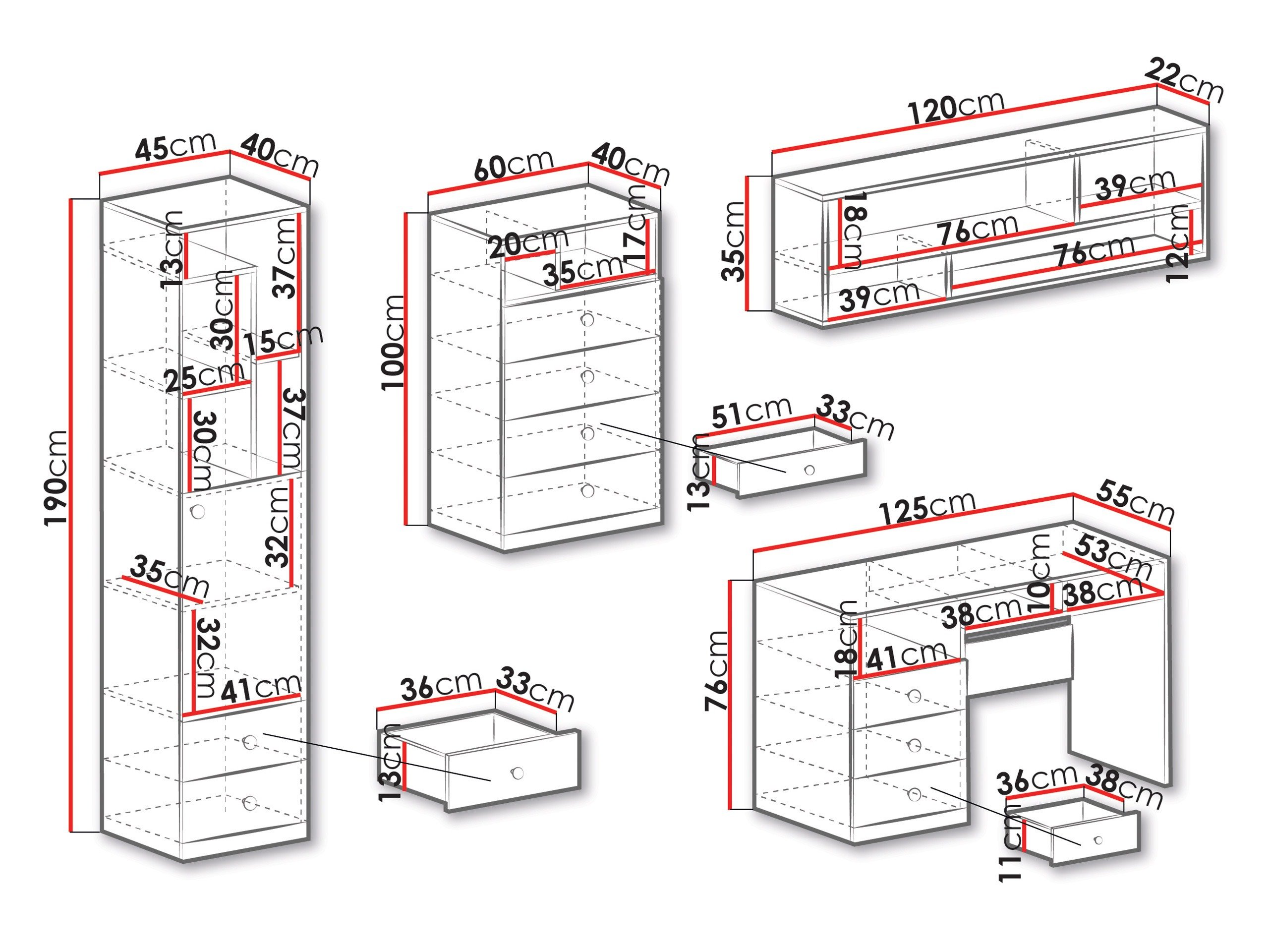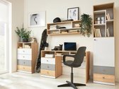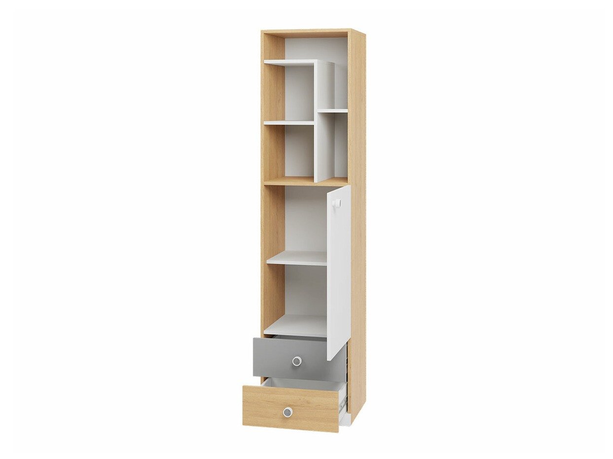 Meubler la chambre d'un adolescent peut devenir un véritable défi. C'est là que les collections de meubles pour la chambre d'un jeune homme deviennent pratiques. Les ensembles de meubles sont un choix pratique pour ceux qui veulent gagner du temps et recherchent des meubles au style intérieur solide. Cette collection de meubles fascine par ses couleurs pastel et ses formes simples. Le design des meubles combine trois couleurs : blanc, gris et couleur chêne. De petites poignées rondes ont été choisies pour souligner encore plus le design minimaliste et ludique des meubles. Les meubles de cette collection permettront de créer un espace où le jeune appréciera à la fois de passer du temps avec ses amis et d'étudier. Dans l'ensemble de meubles, vous trouverez une étagère, un lit, une commode, une armoire, et tout ce dont vous pourriez avoir besoin dans la chambre d'un jeune. La conception du meuble est bien pensée : vous trouverez ici des compartiments, des étagères et des tiroirs de différentes tailles, qui deviendront une solution très pratique pour garder la chambre en ordre. Les bords du meuble sont recouverts d'un ruban de finition, fabriqué en plastique résistant, qui est généralement utilisé pour protéger les bords des panneaux. Le design de cette collection de meubles est parfait pour les enfants de tous âges.
