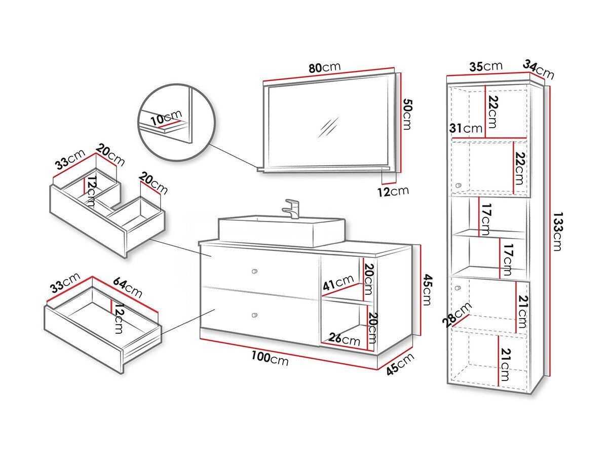 Dimensions de l'armoire sous lavabo: