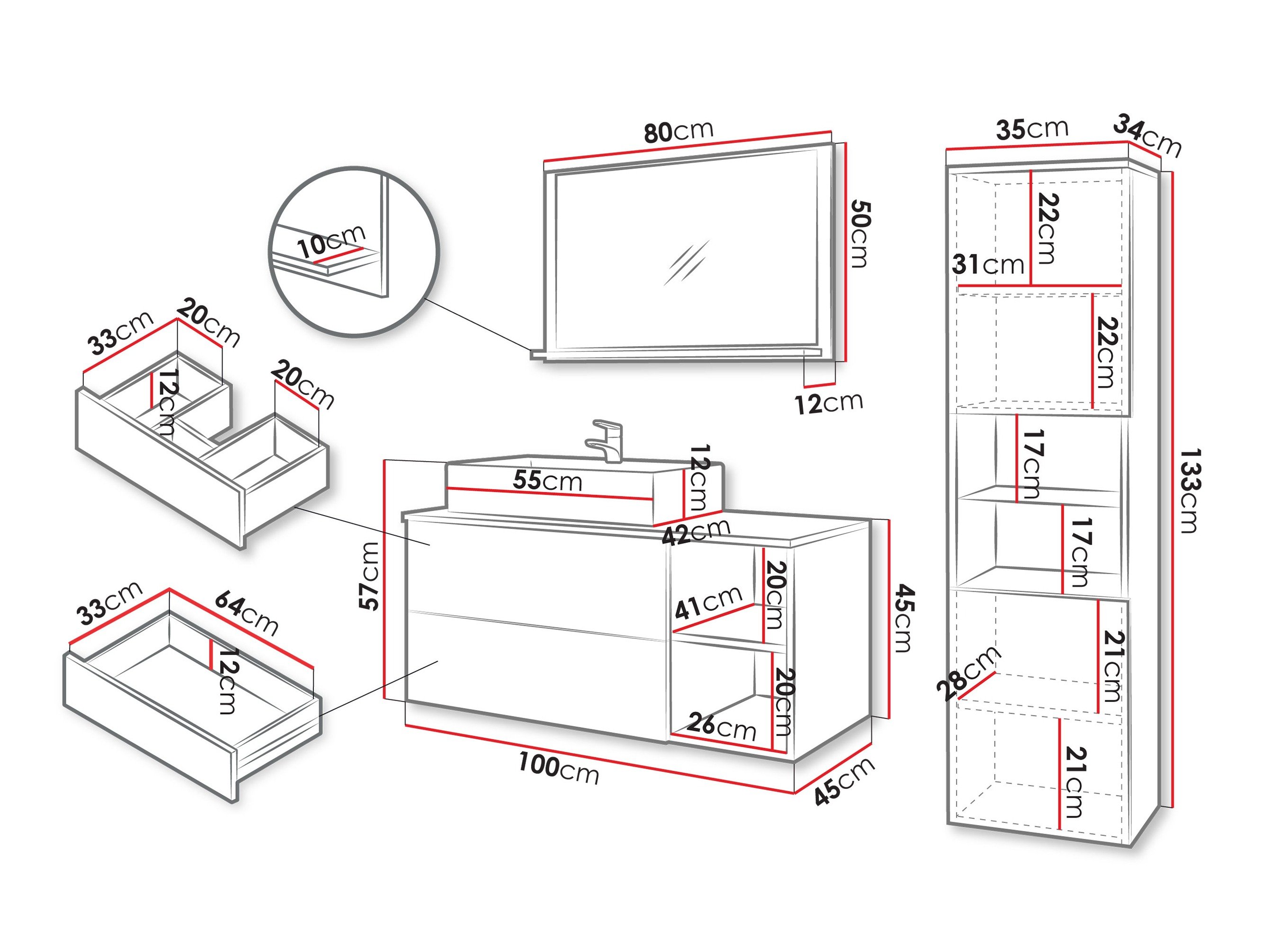 Ensemble de salle de bain Nauta I (Cachemire + Chêne)