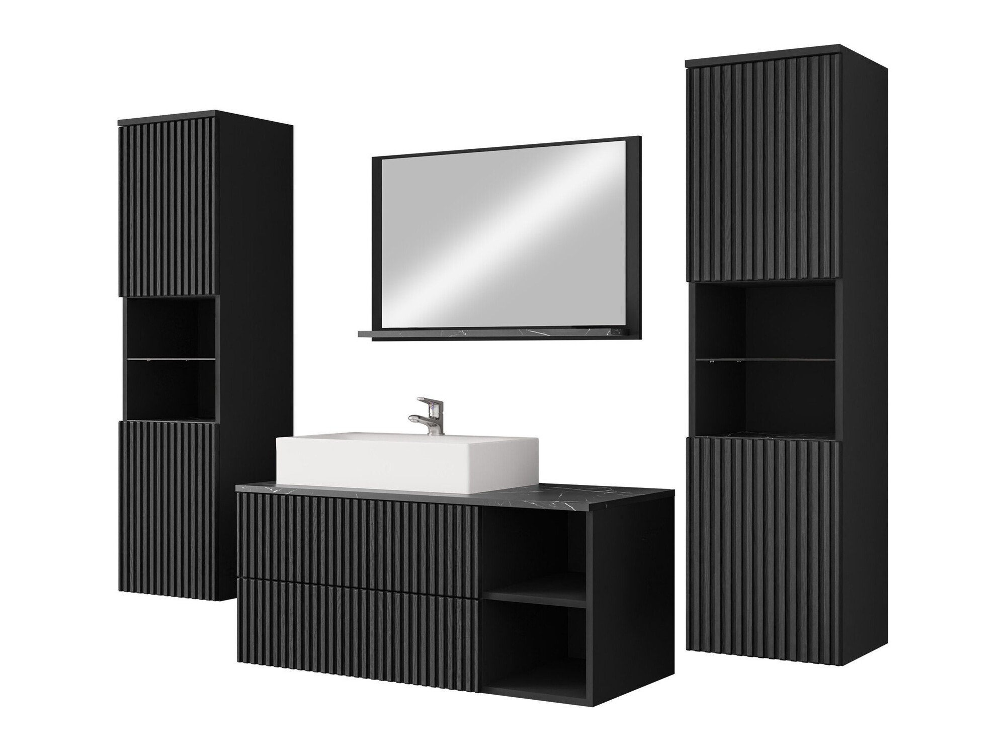 Ensemble de salle de bain Nauta II (Noir + Marbre noir)