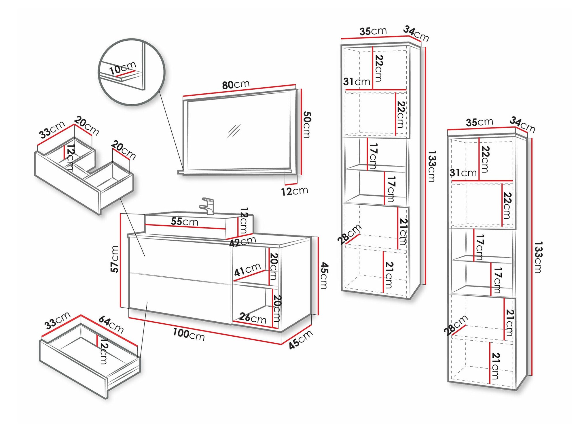 Dimensions de l'armoire sous lavabo:
