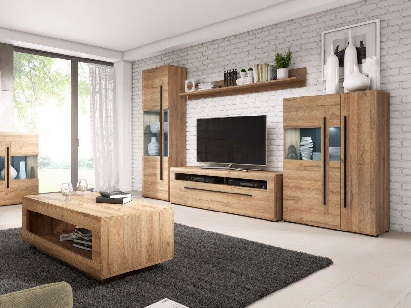 Les couleurs des meubles de cette collection sont très élégantes. De longues poignées noires enrichissent la collection d'un charme exceptionnel. La collection comprend des commodes, des vitrines et des meubles TV. La collection est parfaite pour créer un style minimaliste tendance. Son décor intemporel est également remarquable - le mobilier blanc se marie bien avec le style scandinave et le charmant design d'intérieur glamour. D'autre part, si vous appréciez les classiques, les meubles en chêne «Grandson» sont le choix parfait pour vous. Les meubles de la collection de salon sont constitués de panneaux stratifiés, tandis que les parties avant sont en panneau MDF, qui est protégé par une feuille de PVC.