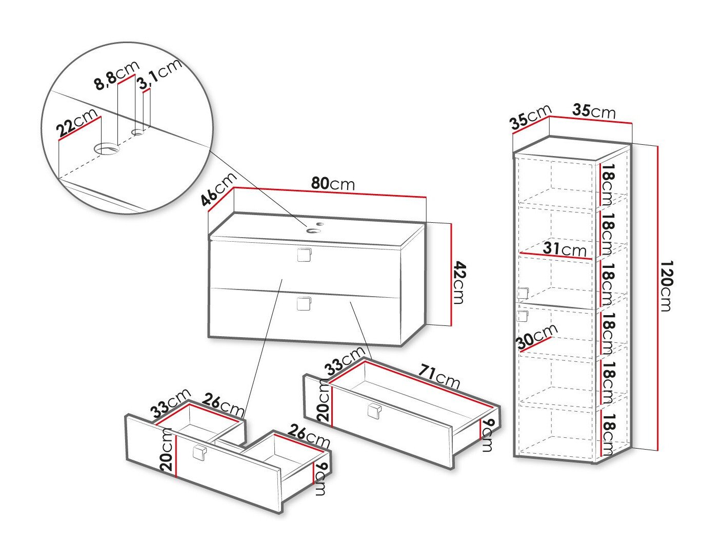 Dimensions de l'armoire sous lavabo: