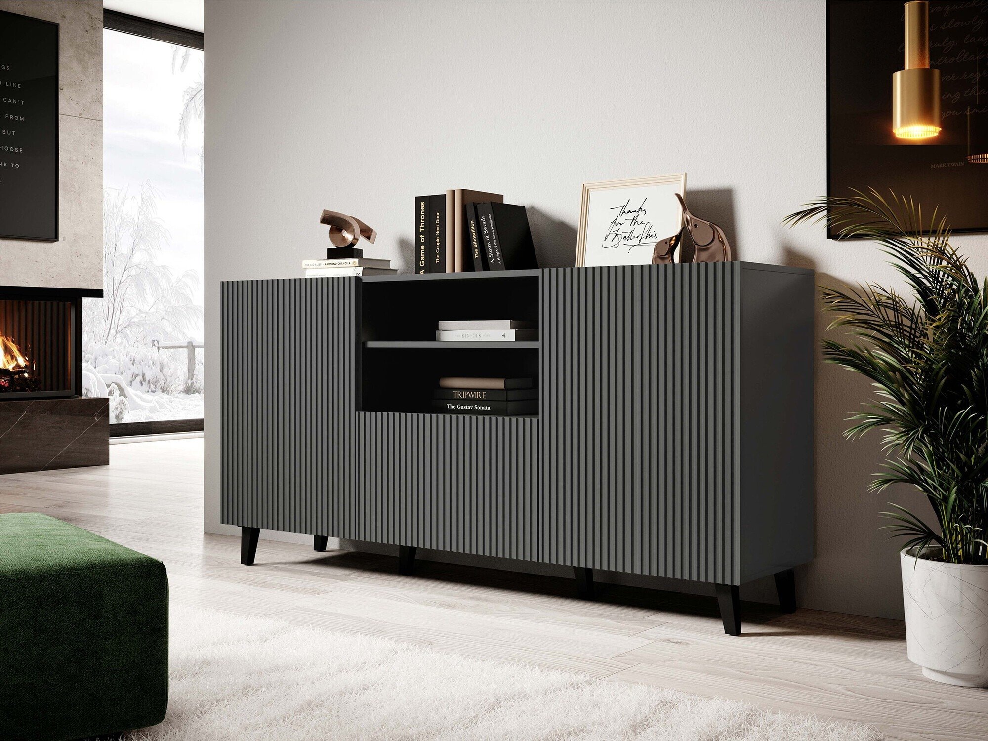 Vous avez probablement entendu parler que la beauté réside dans la simplicité. Cette collection est tout à ce sujet. Les façades des meubles sont dominées par des lignes verticales, qui se marient bien avec la couleur chêne «Wotan». Le design moderne n'est pas surchargé de détails inutiles, de sorte que les lignes décoratives verticales deviennent l'objectif principal de la collection. Les pieds de meubles noirs ont un aspect moderne et complètent parfaitement le design des meubles. Des meubles spacieux et de nombreuses étagères vous aideront à organiser vos affaires et à accueillir les choses les plus importantes. Des étagères réglables vous permettront de choisir l'agencement souhaité. La collection comprend des meubles avec un foyer électrique intégré. C'est une solution unique qui aidera à créer un intérieur plus confortable. Un foyer électrique est une excellente alternative à un foyer traditionnel qui vous permettra de profiter d'une flamme réaliste à la maison. Apportez simplicité et design moderne dans votre espace domestique et créez un intérieur confortable avec les meubles de cette collection.