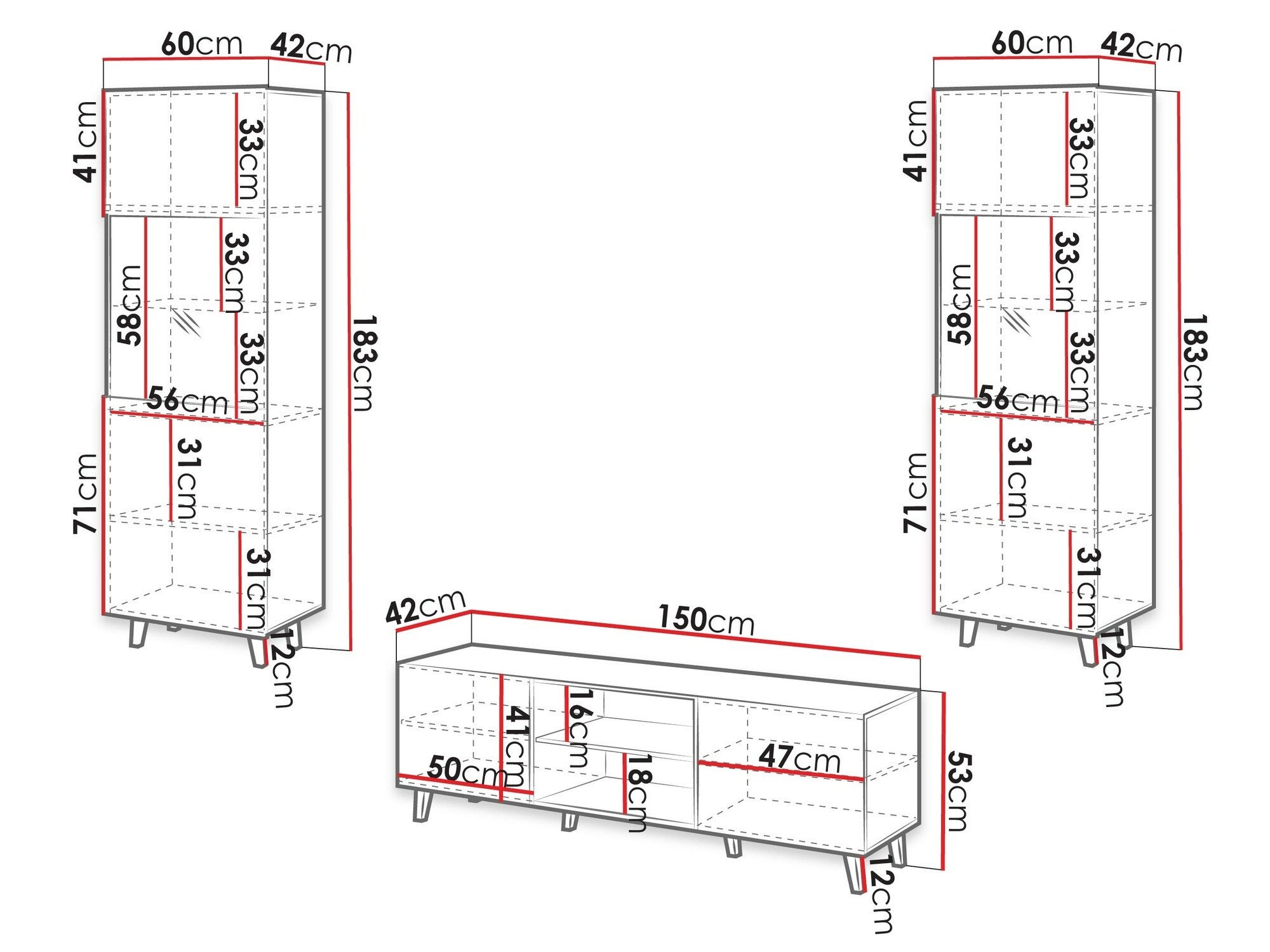 53 x 150 x 42 cm
