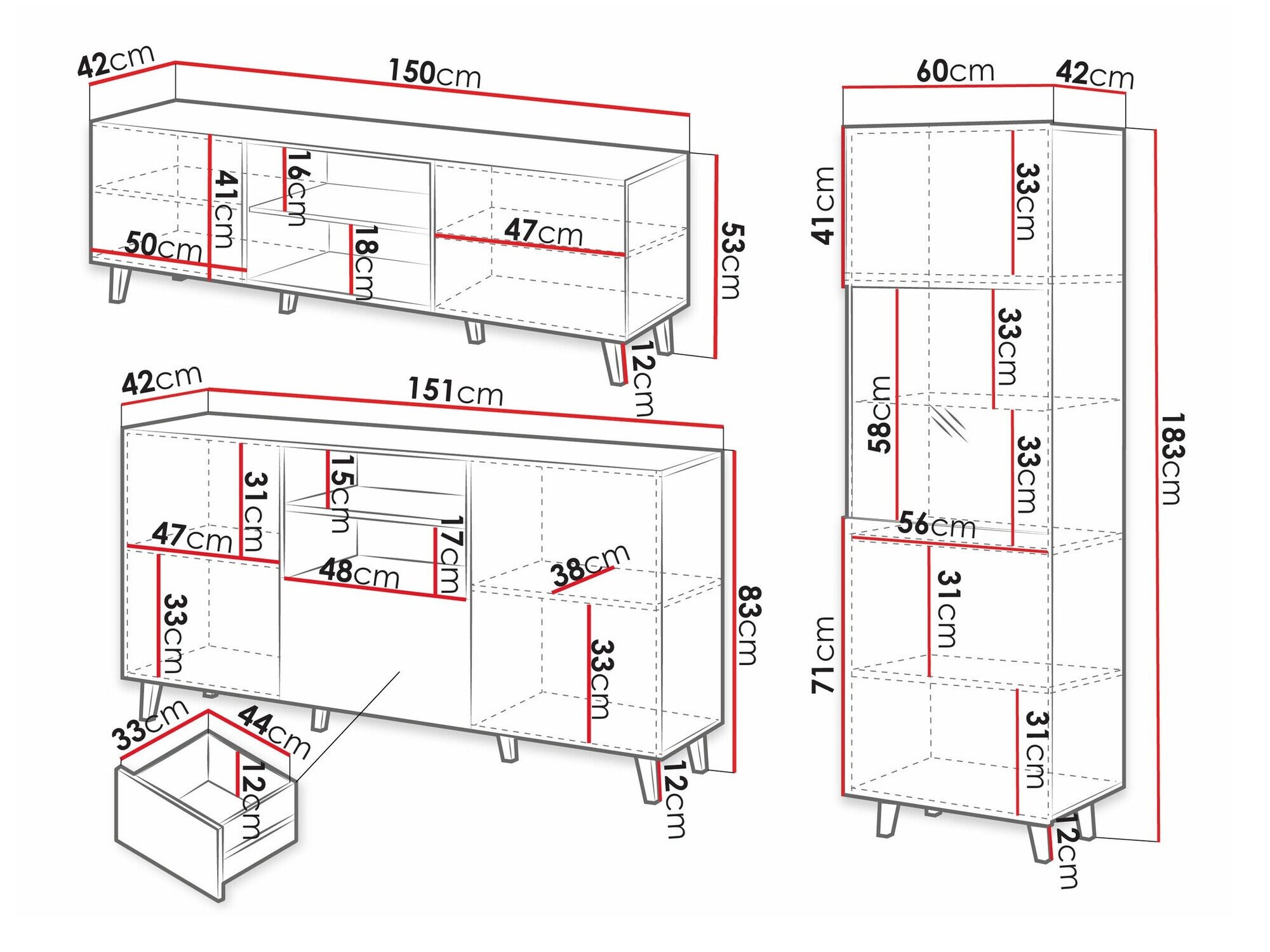 Vous avez probablement entendu parler que la beauté réside dans la simplicité. Cette collection est tout à ce sujet. Les façades des meubles sont dominées par des lignes verticales, qui se marient bien avec la couleur chêne «Wotan». Le design moderne n'est pas surchargé de détails inutiles, de sorte que les lignes décoratives verticales deviennent l'objectif principal de la collection. Les pieds de meubles noirs ont un aspect moderne et complètent parfaitement le design des meubles. Des meubles spacieux et de nombreuses étagères vous aideront à organiser vos affaires et à accueillir les choses les plus importantes. Des étagères réglables vous permettront de choisir l'agencement souhaité. La collection comprend des meubles avec un foyer électrique intégré. C'est une solution unique qui aidera à créer un intérieur plus confortable. Un foyer électrique est une excellente alternative à un foyer traditionnel qui vous permettra de profiter d'une flamme réaliste à la maison. Apportez simplicité et design moderne dans votre espace domestique et créez un intérieur confortable avec les meubles de cette collection.