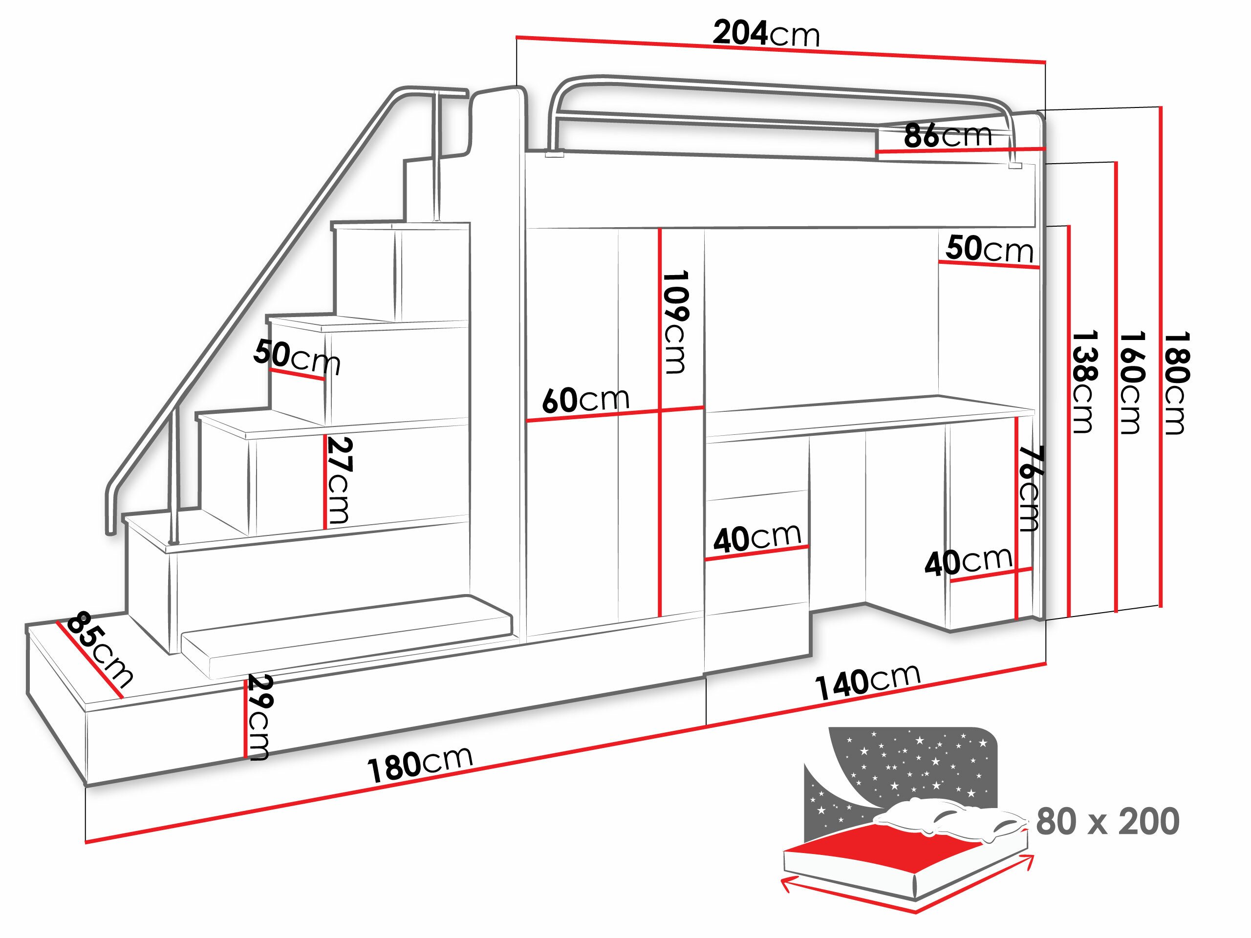 - 80 x 200 cm