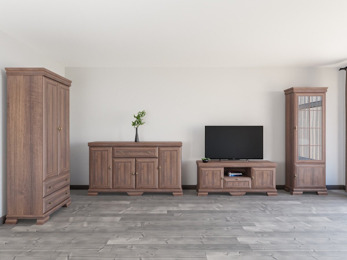 Cette collection de style classique est destinée à ceux qui apprécient le design et l'élégance intemporels. Les meubles de la collection sont ornés de poignées en métal au design exclusif, ce qui donne à chaque pièce un accent luxueux. L'une des caractéristiques les plus importantes de cette collection est sa surface résistante aux rayures, qui garantit la durabilité des meubles. Même après de nombreuses années d'utilisation continue, ces meubles conserveront leur aspect impeccable. Cette collection ne se contente pas d'être élégante, elle accorde également une grande importance à la fonctionnalité. Les étagères et les tiroirs sont spacieux, ce qui vous permet de disposer de suffisamment d'espace pour organiser vos objets.