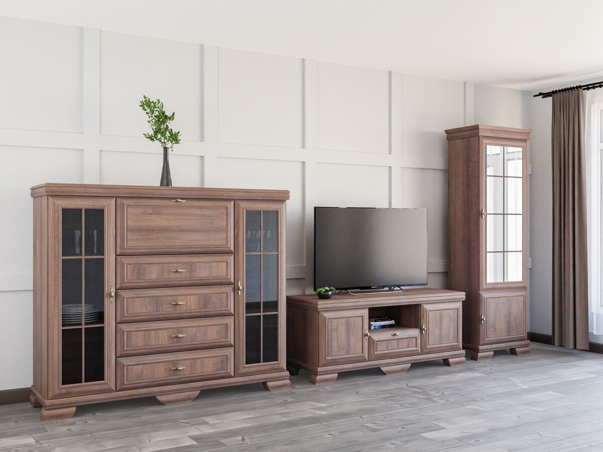 Cette collection de style classique est destinée à ceux qui apprécient le design et l'élégance intemporels. Les meubles de la collection sont ornés de poignées en métal au design exclusif, ce qui donne à chaque pièce un accent luxueux. L'une des caractéristiques les plus importantes de cette collection est sa surface résistante aux rayures, qui garantit la durabilité des meubles. Même après de nombreuses années d'utilisation continue, ces meubles conserveront leur aspect impeccable. Cette collection ne se contente pas d'être élégante, elle accorde également une grande importance à la fonctionnalité. Les étagères et les tiroirs sont spacieux, ce qui vous permet de disposer de suffisamment d'espace pour organiser vos objets. La combinaison du style classique et de l'aspect pratique garantit que cette collection ne décorera pas seulement votre intérieur mais améliorera également la qualité de votre vie quotidienne. Appréciez la beauté du style classique et faites entrer l'élégance intemporelle dans votre maison.