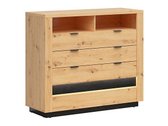 Les poignées en métal noir se marient parfaitement avec les lignes horizontales du meuble. L'éclairage DEL intégré donne à la collection une modernité et souligne son design exclusif. Les meubles de cette collection ont un mécanisme de fermeture en douceur, grâce auquel les portes et les tiroirs sont arrêtés juste avant la fermeture et se rétractent lentement, ne provoquant ainsi pas de bruit supplémentaire. L'espace du meuble est utilisé au maximum - des tiroirs et des étagères larges et spacieux seront parfaits pour tous les éléments les plus importants à intégrer dans les meubles de cette collection.