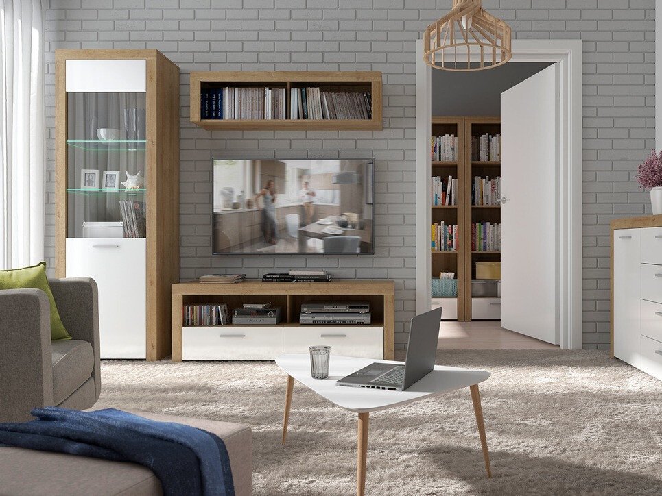 Une collection de meubles parfaite pour les maisons qui apprécient les lignes épurées et le design minimaliste. Cette collection est dominée par des couleurs neutres. Le duo de couleurs blanc brillant et chêne « Riviera » rayonne de chaleur et de confort. Les lignes simples des meubles et les poignées en plastique minimalistes créent une combinaison parfaite. La fonctionnalité n'est pas non plus oubliée : des compartiments de meubles spacieux garantissent que toutes les choses les plus importantes trouvent leur place. Les vitrines de la collection utilisent du verre trempé, plus résistant que le verre ordinaire.