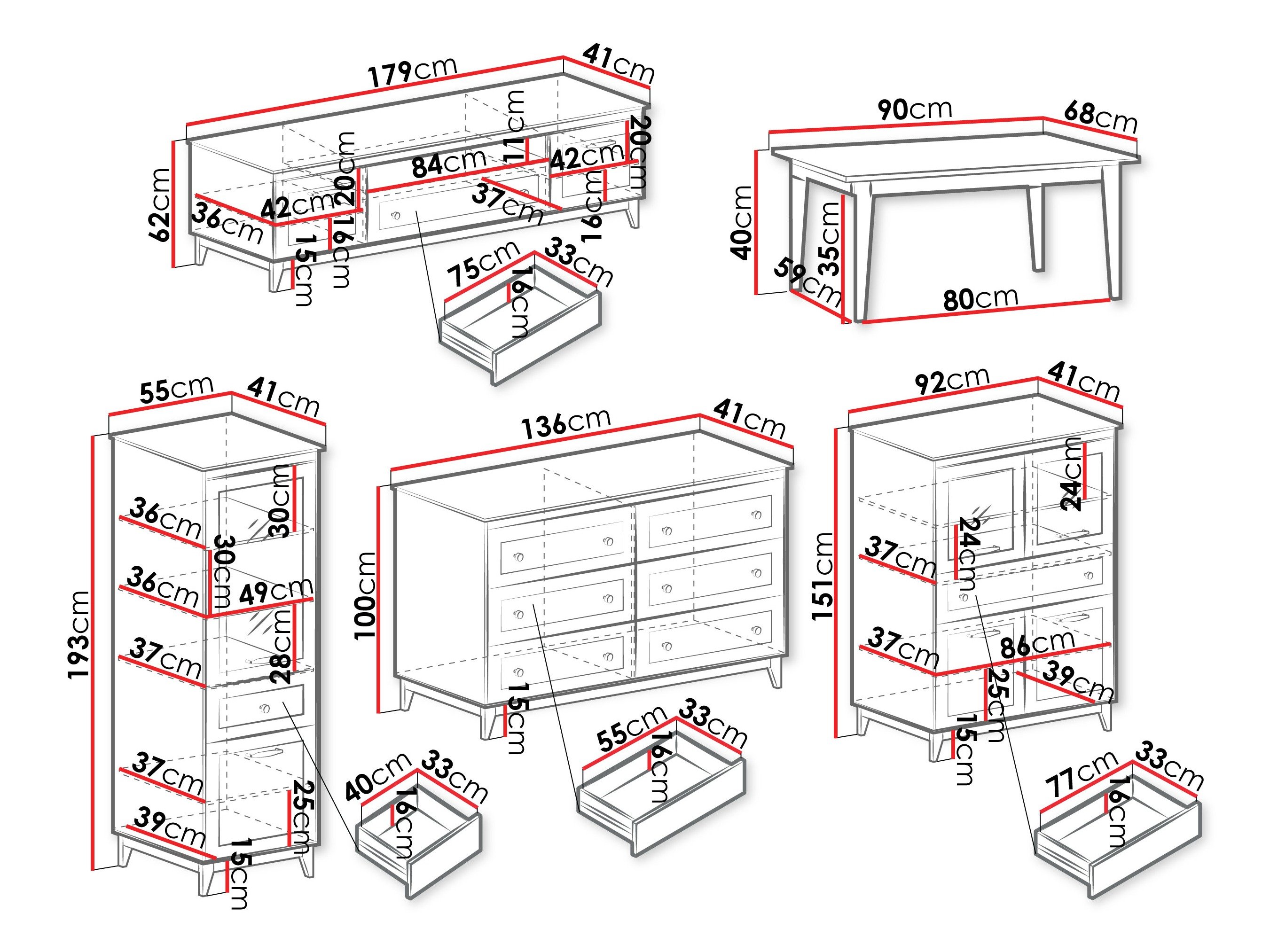 Dimensions de la commode: