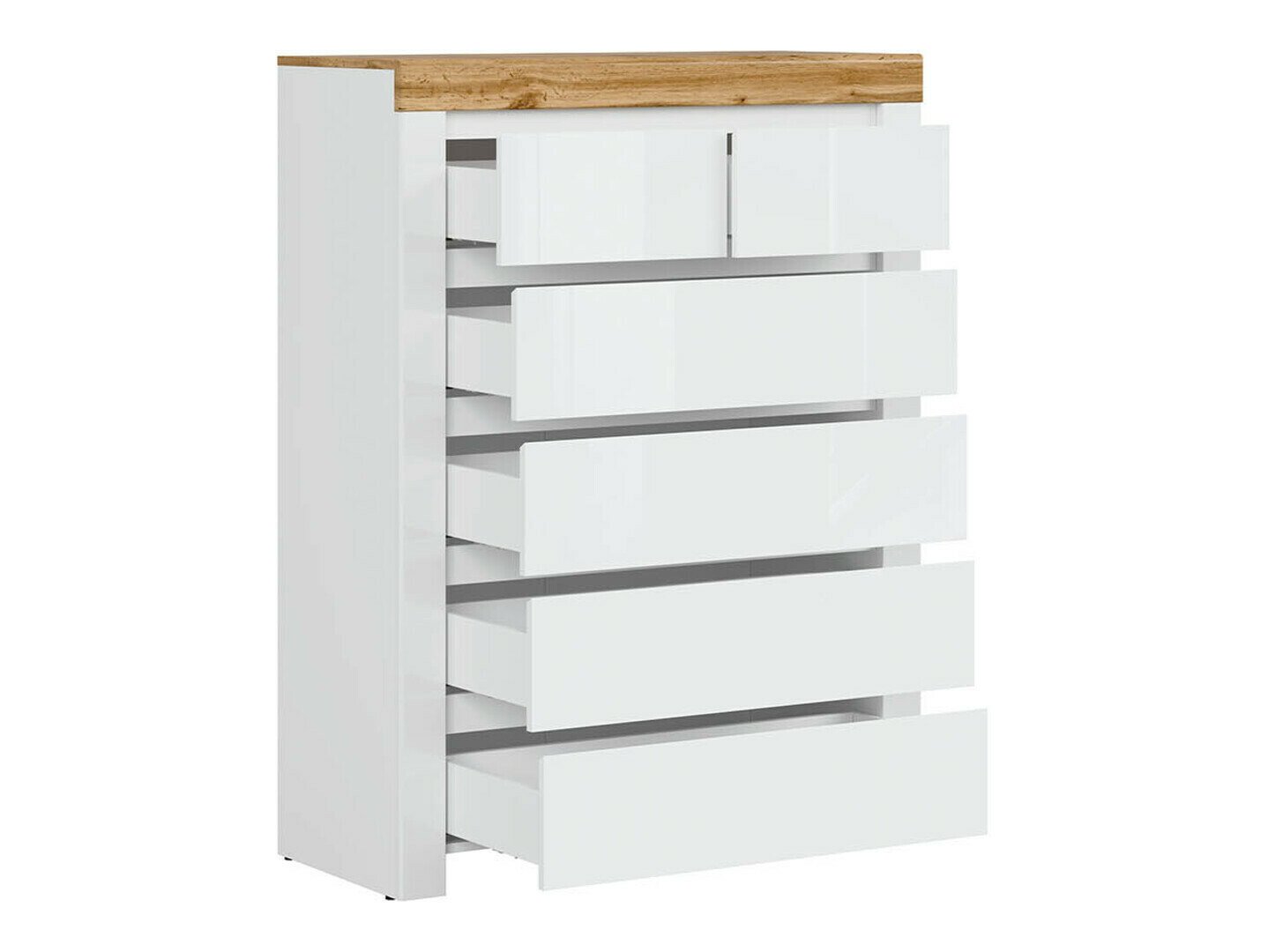 Cette collection est conçue pour ceux qui recherchent des solutions de design modernes. Elle allie l'ordre, la pureté et l'harmonie caractéristiques du style scandinave. Les formes définies et les lignes épurées permettent de créer un espace minimaliste où l'esthétique et la fonctionnalité se complètent. Les poignées dissimulées contribuent à maintenir un aspect harmonieux et épuré, tandis que le mécanisme de fermeture en douceur garantit un confort d'utilisation au quotidien : les portes et les tiroirs s'ouvrent et se ferment en douceur et sans bruit. La légèreté visuelle de la collection est encore renforcée par des éléments en verre trempé, qui ajoutent une touche raffinée. Il s'agit là de choix mûrement réfléchis qui permettent aux meubles de s'intégrer sans effort dans les intérieurs contemporains.