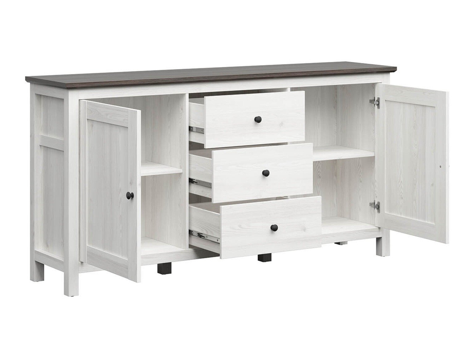 Grâce aux meubles de la collection, le salon peut devenir un espace confortable pour passer du temps avec la famille avec laquelle vous pouvez avoir de longues conversations. Des couleurs calmes et un design élégant rendront votre temps à la maison encore plus agréable. Dans la collection, vous trouverez des meubles pour les deux espaces: le salon et la chambre. Les meubles de cette collection seront parfaitement adaptés aussi bien aux intérieurs clairs qu'aux intérieurs sombres, les meubles conserveront un style minimaliste. Les lignes et les détails de style provençal prédominent ici. Des lignes simples, des couleurs chaleureuses, des petites poignées rondes soulignent le caractère exclusif du meuble. Le design est complété par des détails de haute qualité tels que le verre trempé et l'éclairage LEDintégré à économie d'énergie. Les tiroirs et les portes ont un mécanisme de fermeture silencieux. Ce mécanisme a la particularité d'empêcher la porte et le tiroir de se fermer rapidement. Grâce à des amortisseurs spéciaux, les portes et les tiroirs sont arrêtés juste avant la fermeture et rentrés lentement, afin de ne pas faire de bruit.
