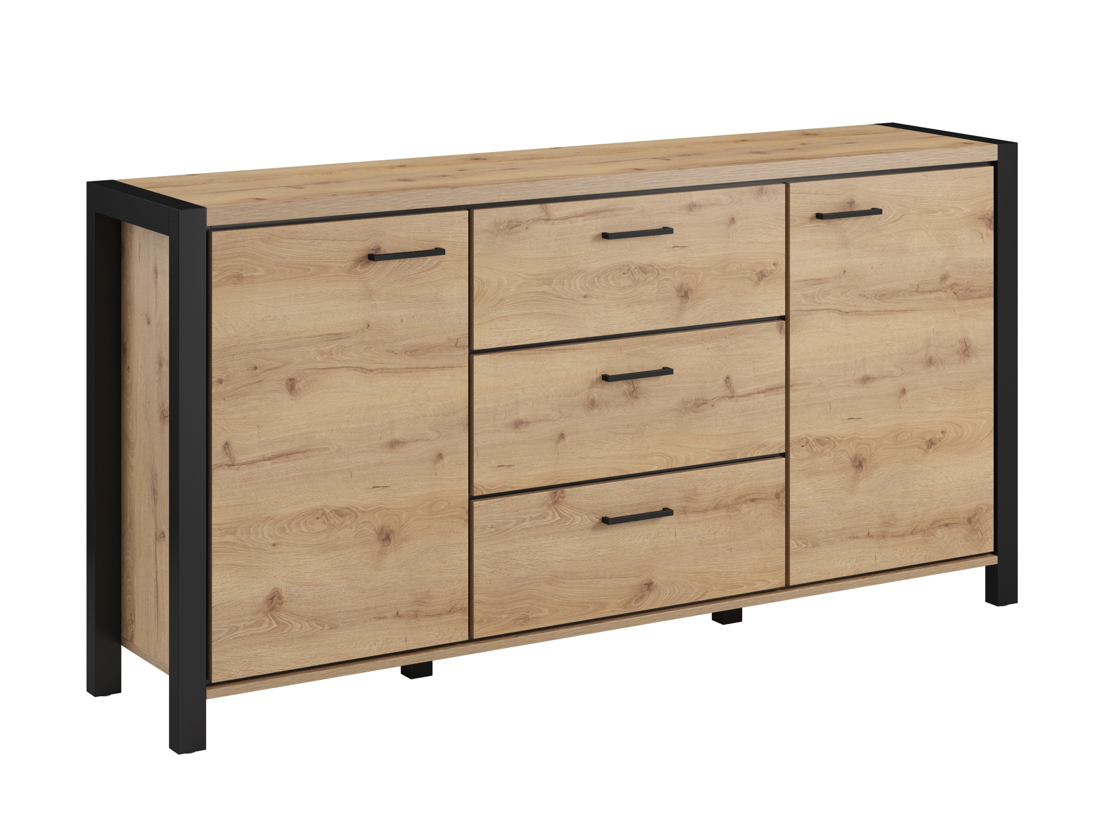 Cette collection est conçue pour les amateurs d'intérieurs industriels. Les poignées en métal sont combinées avec des façades de couleur chêne clair qui laissent apparaître des traces du grain du bois. La forme des poignées s'intègre parfaitement à l'ensemble du design. Les meubles sont mis en valeur par des bords noirs mats qui soulignent la silhouette stricte des meubles. L'une des principales caractéristiques de la collection est l'espace. Des sections de meubles extrêmement spacieuses feront en sorte que toutes les choses trouvent leur place. Cette collection vous permettra de créer une ambiance intérieure industrielle chez vous sans trop d'efforts. Créez une atmosphère encore plus chaleureuse chez vous en commandant en plus un éclairage LED.