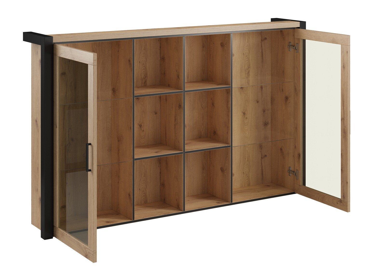 Cette collection est conçue pour les amateurs d'intérieurs industriels. Les poignées en métal sont combinées avec des façades de couleur chêne clair qui laissent apparaître des traces du grain du bois. La forme des poignées s'intègre parfaitement à l'ensemble du design. Les meubles sont mis en valeur par des bords noirs mats qui soulignent la silhouette stricte des meubles. L'une des principales caractéristiques de la collection est l'espace. Des sections de meubles extrêmement spacieuses feront en sorte que toutes les choses trouvent leur place. Cette collection vous permettra de créer une ambiance intérieure industrielle chez vous sans trop d'efforts. Créez une atmosphère encore plus chaleureuse chez vous en commandant en plus un éclairage LED.