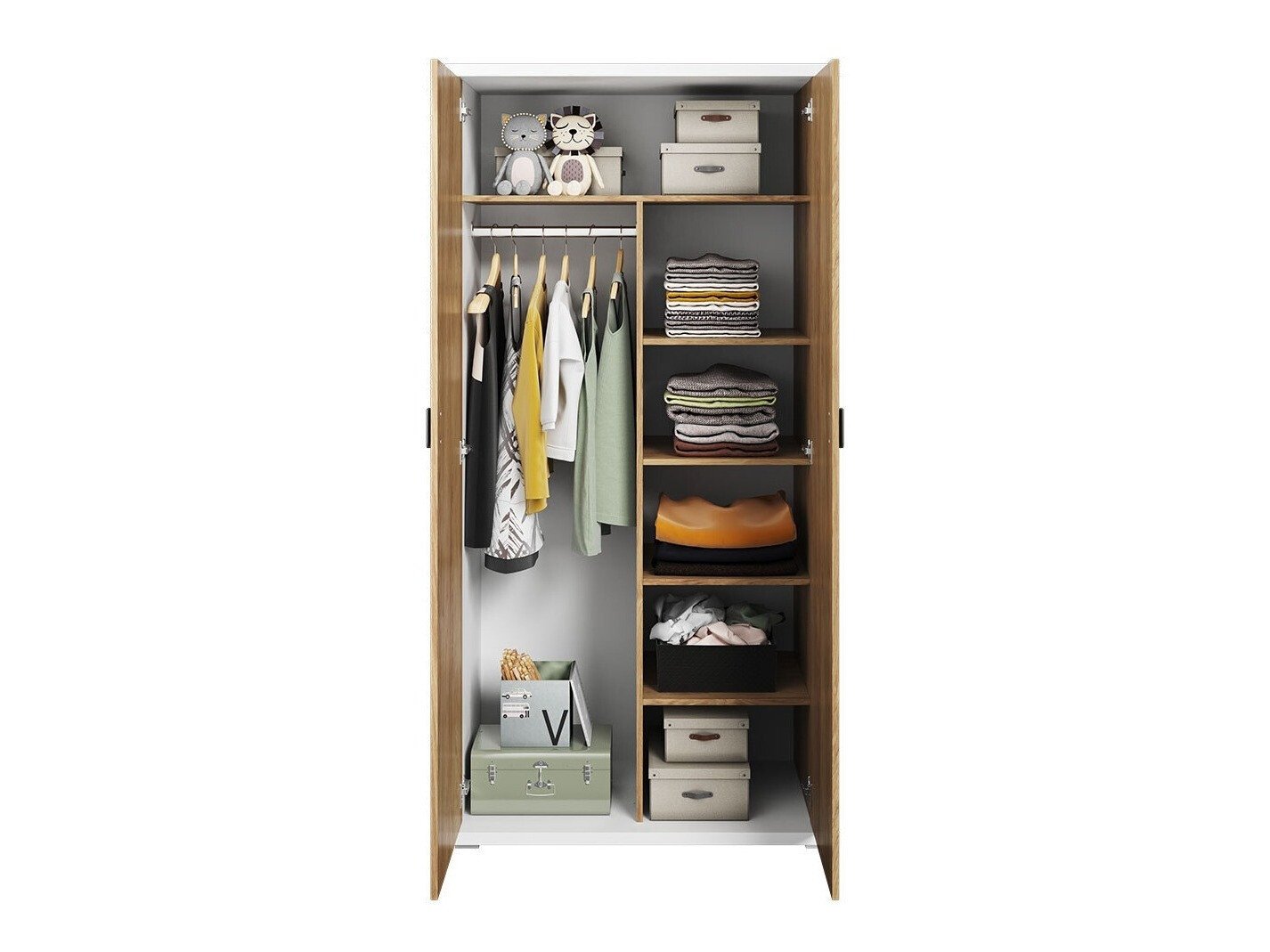 Le mobilier de la collection impressionne par sa palette de couleurs vives et son design simple. Ici sont combinées des couleurs de blanc et de chêne chaud. Cette combinaison de couleurs et de simplicité des lignes rappelle le style intérieur scandinave, complété par des détails intérieurs modernes. Le cadre de meuble blanc massif donne au meuble son caractère unique. Les façades utilisent de petites poignées en plastique qui s'intègrent parfaitement à l'ensemble du design. L'espace de meuble est pleinement utilisé: une table avec un grand plateau, des tiroirs spacieux, des étagères avec de nombreux compartiments, cela facilitera le maintien de l'ordre. Créez la chambre de rêve d'un jeune à partir de meubles individuels ou en choisissant un ensemble de meubles où les meubles sont déjà assortis.