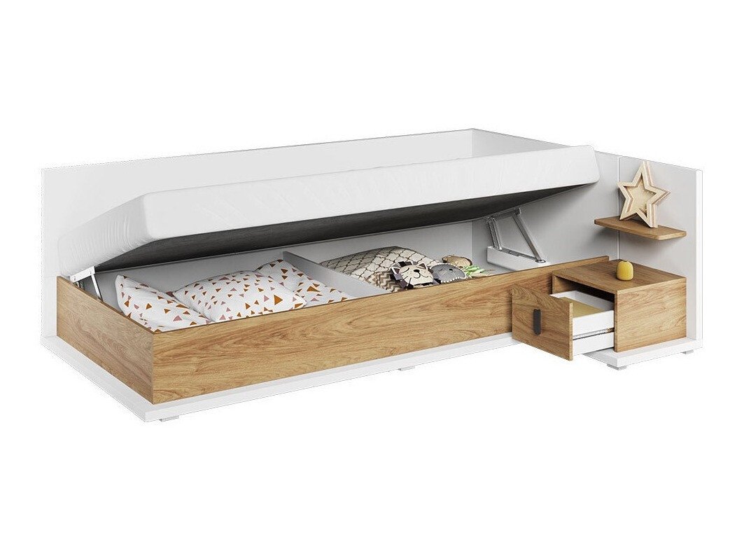 Le mobilier de la collection impressionne par sa palette de couleurs vives et son design simple. Ici sont combinées des couleurs de blanc et de chêne chaud. Cette combinaison de couleurs et de simplicité des lignes rappelle le style intérieur scandinave, complété par des détails intérieurs modernes. Le cadre de meuble blanc massif donne au meuble son caractère unique. Les façades utilisent de petites poignées en plastique qui s'intègrent parfaitement à l'ensemble du design. L'espace de meuble est pleinement utilisé: une table avec un grand plateau, des tiroirs spacieux, des étagères avec de nombreux compartiments, cela facilitera le maintien de l'ordre. Créez la chambre de rêve d'un jeune à partir de meubles individuels ou en choisissant un ensemble de meubles où les meubles sont déjà assortis.