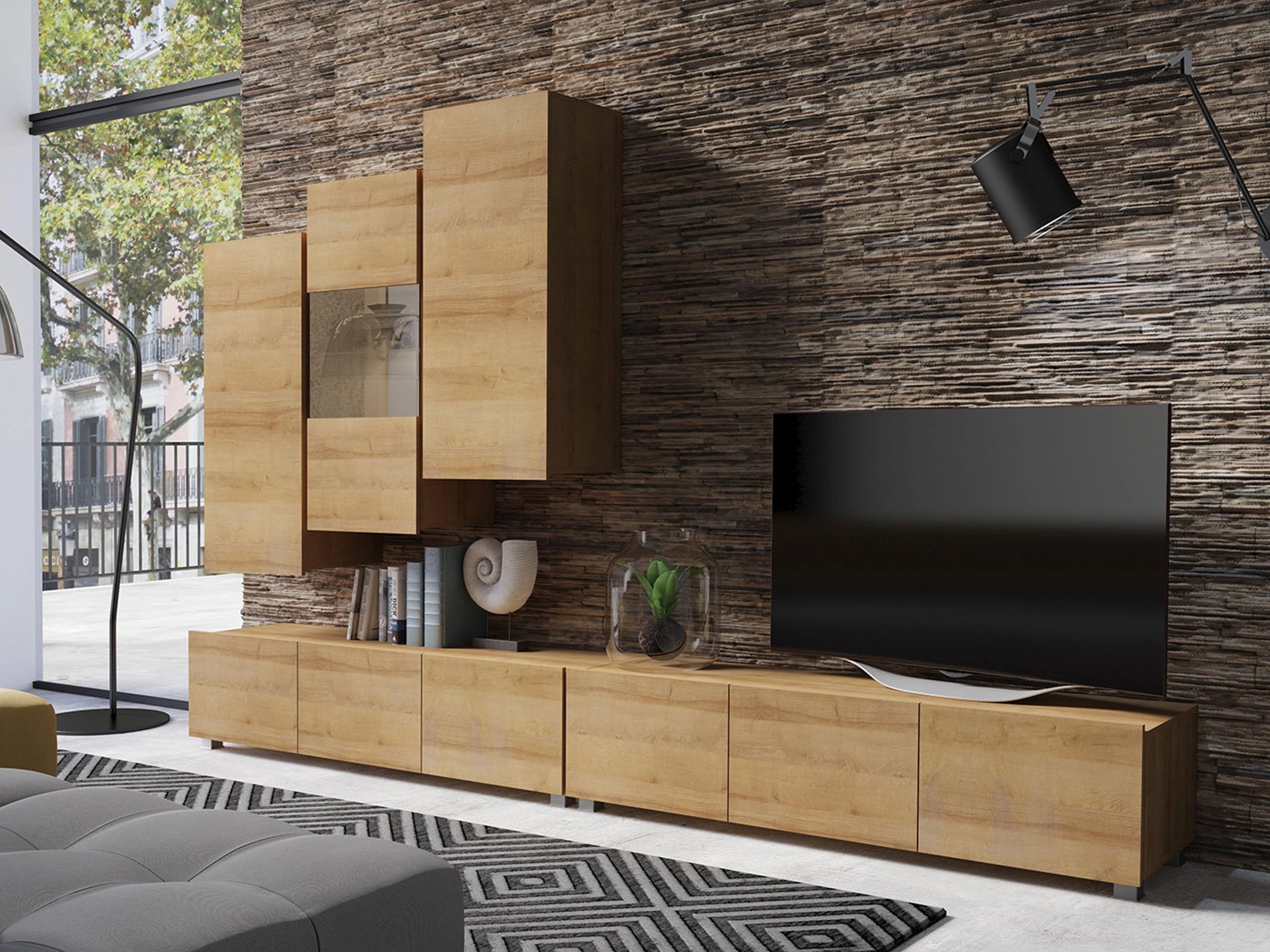 Cette collection de meubles est conçue pour s'adapter au rythme de la vie moderne, où fonctionnalité et esthétique vont de pair. Ses lignes épurées, ses formes contemporaines et ses détails subtils vous permettent de créer facilement un espace confortable et authentique où vous aurez plaisir à rentrer chez vous. La collection comprend des meubles TV, des ensembles de salon, des armoires murales, des lits et des bureaux, tous conçus avec soin pour s'harmoniser parfaitement entre eux. Ces pièces s'adaptent sans effort à différents intérieurs, offrant des solutions polyvalentes pour les espaces compacts ou formant des combinaisons audacieuses et distinctives dans les pièces plus grandes. Certains modèles sont équipés d'un éclairage LED intégré à faible consommation d'énergie, qui ajoute de la chaleur et de l'ambiance le soir. Les éléments en verre trempé améliorent à la fois la durabilité et le design, apportant une touche raffinée de caractère. Cette collection s'intègre facilement dans une variété d'intérieurs, contribuant à créer un espace de vie accueillant et élégant, un lieu où se réunir, faire une pause et simplement profiter de la vie.
