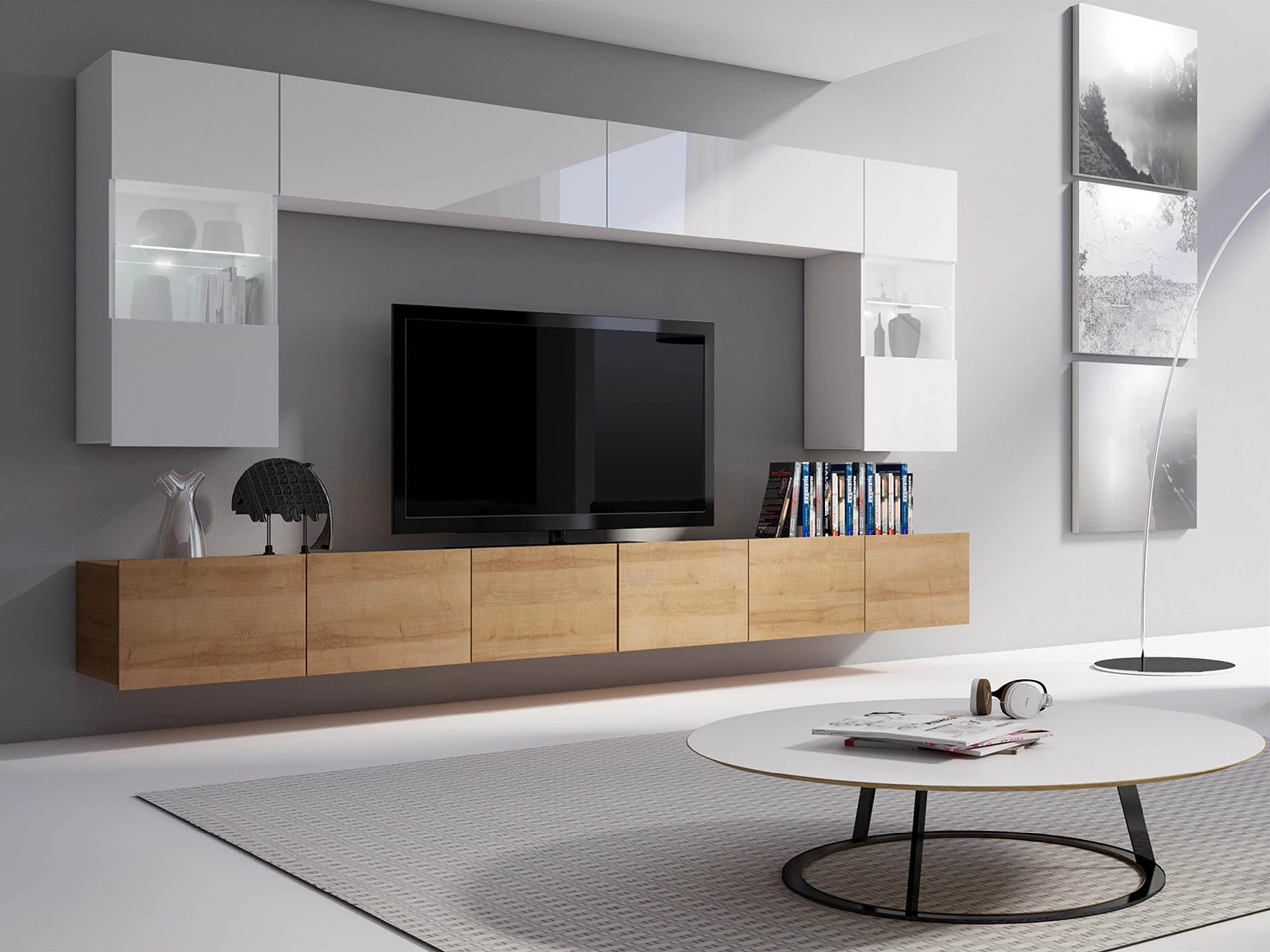 Cette collection de meubles est conçue pour s'adapter au rythme de la vie moderne, où fonctionnalité et esthétique vont de pair. Ses lignes épurées, ses formes contemporaines et ses détails subtils vous permettent de créer facilement un espace confortable et authentique où vous aurez plaisir à rentrer chez vous. La collection comprend des meubles TV, des ensembles de salon, des armoires murales, des lits et des bureaux, tous conçus avec soin pour s'harmoniser parfaitement entre eux. Ces pièces s'adaptent sans effort à différents intérieurs, offrant des solutions polyvalentes pour les espaces compacts ou formant des combinaisons audacieuses et distinctives dans les pièces plus grandes. Certains modèles sont équipés d'un éclairage LED intégré à faible consommation d'énergie, qui ajoute de la chaleur et de l'ambiance le soir. Les éléments en verre trempé améliorent à la fois la durabilité et le design, apportant une touche raffinée de caractère. Cette collection s'intègre facilement dans une variété d'intérieurs, contribuant à créer un espace de vie accueillant et élégant, un lieu où se réunir, faire une pause et simplement profiter de la vie.