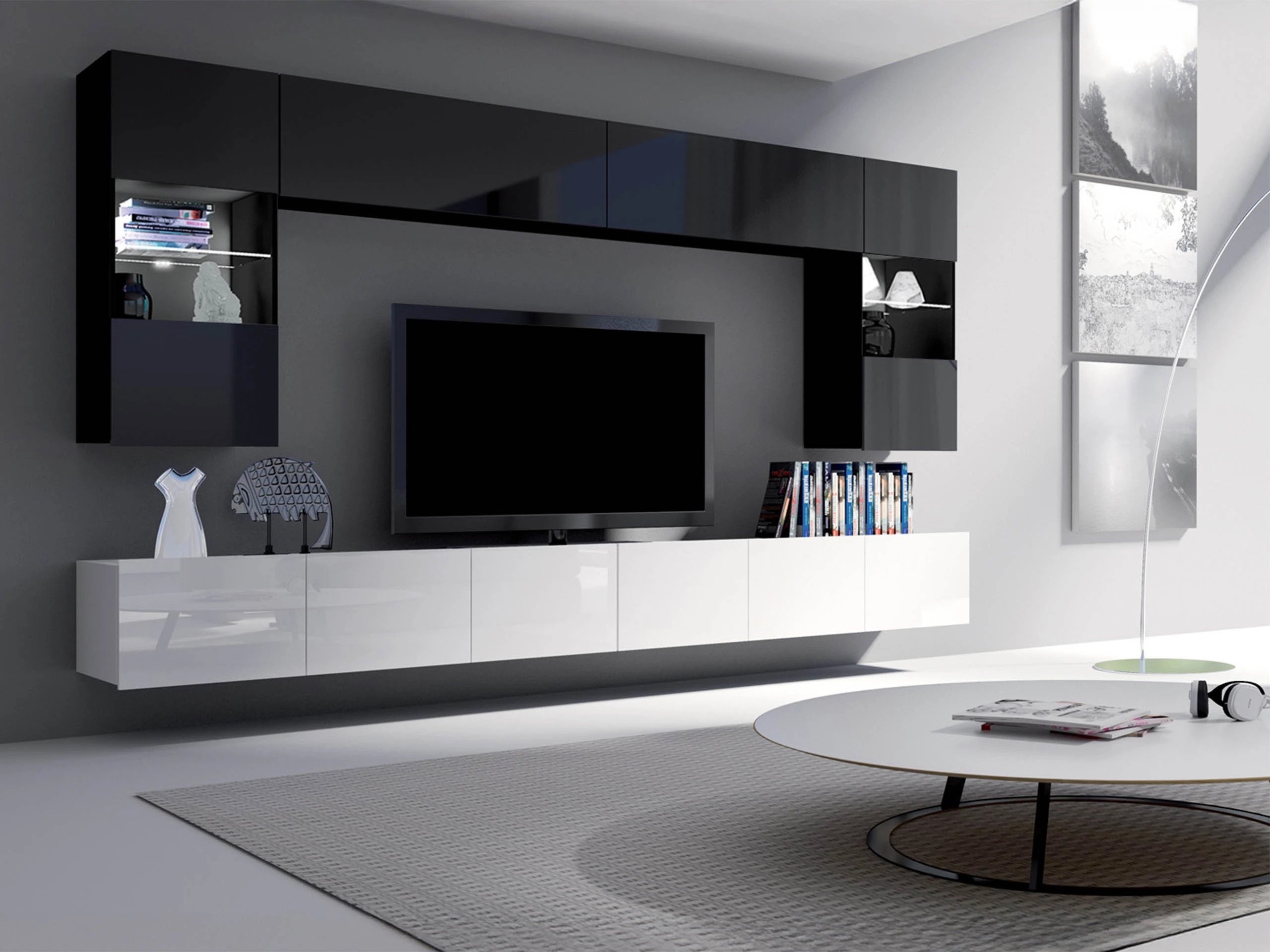 Cette collection de meubles est conçue pour s'adapter au rythme de la vie moderne, où fonctionnalité et esthétique vont de pair. Ses lignes épurées, ses formes contemporaines et ses détails subtils vous permettent de créer facilement un espace confortable et authentique où vous aurez plaisir à rentrer chez vous. La collection comprend des meubles TV, des ensembles de salon, des armoires murales, des lits et des bureaux, tous conçus avec soin pour s'harmoniser parfaitement entre eux. Ces pièces s'adaptent sans effort à différents intérieurs, offrant des solutions polyvalentes pour les espaces compacts ou formant des combinaisons audacieuses et distinctives dans les pièces plus grandes. Certains modèles sont équipés d'un éclairage LED intégré à faible consommation d'énergie, qui ajoute de la chaleur et de l'ambiance le soir. Les éléments en verre trempé améliorent à la fois la durabilité et le design, apportant une touche raffinée de caractère. Cette collection s'intègre facilement dans une variété d'intérieurs, contribuant à créer un espace de vie accueillant et élégant, un lieu où se réunir, faire une pause et simplement profiter de la vie.